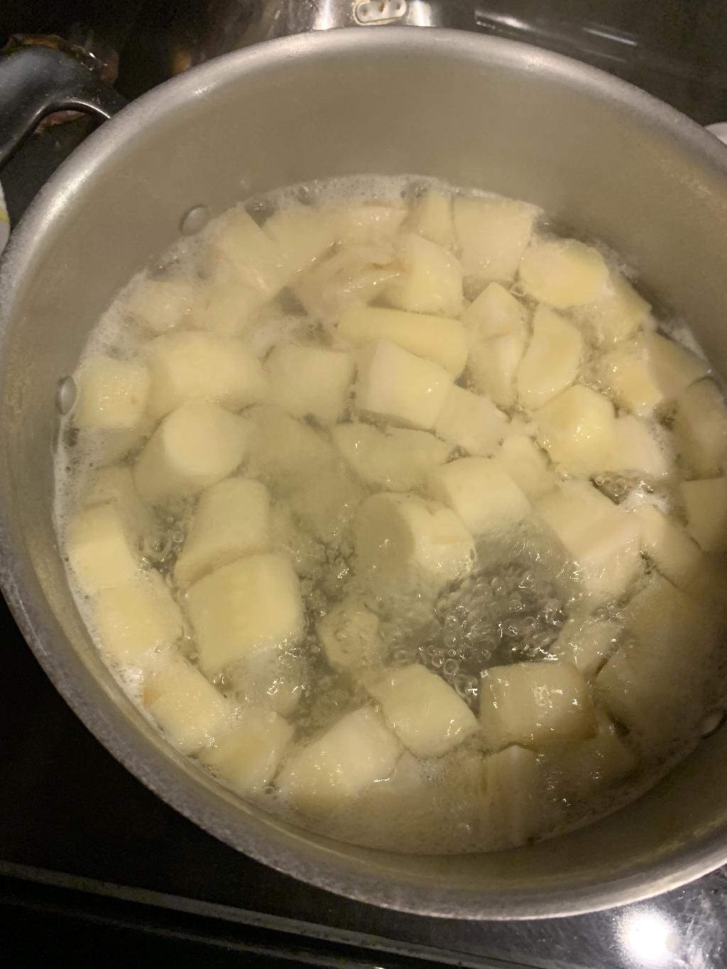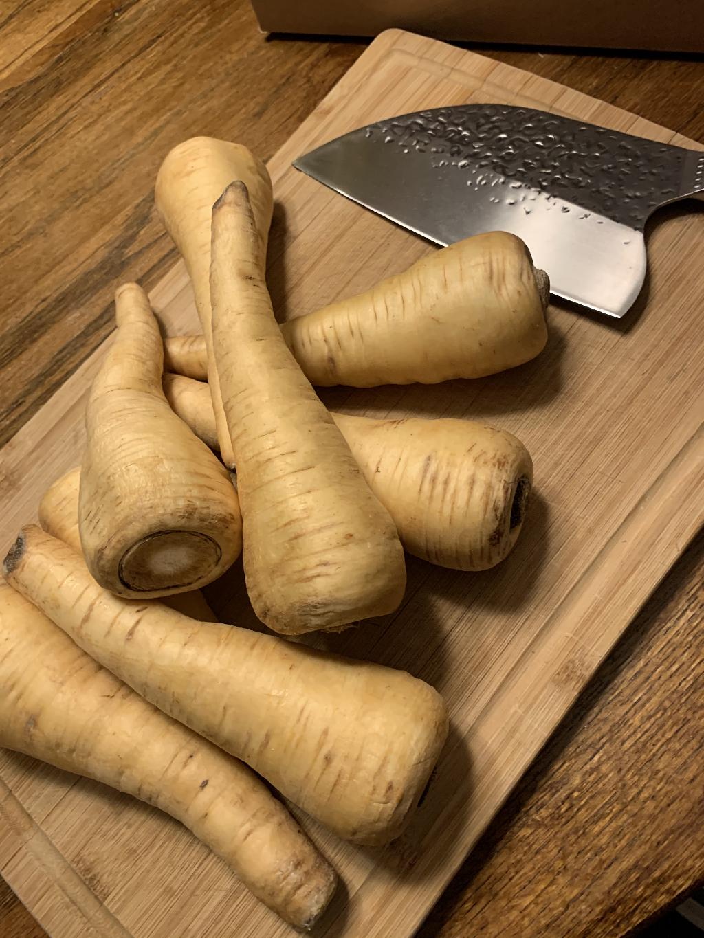 Step #2 While you water reaches a boil. Clean parsnips and remove outer skin.