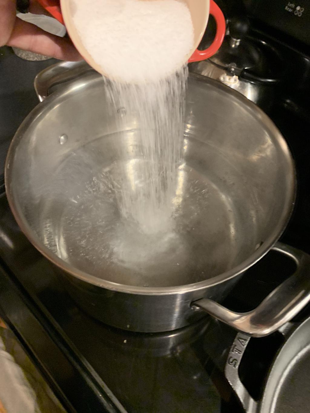 Step #4 Allow the water to reach a boil then add 1/2 cup of salt to the boiling water