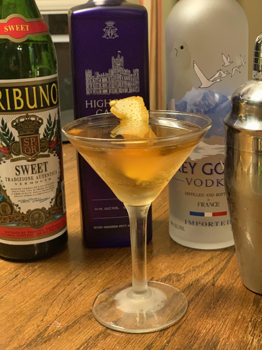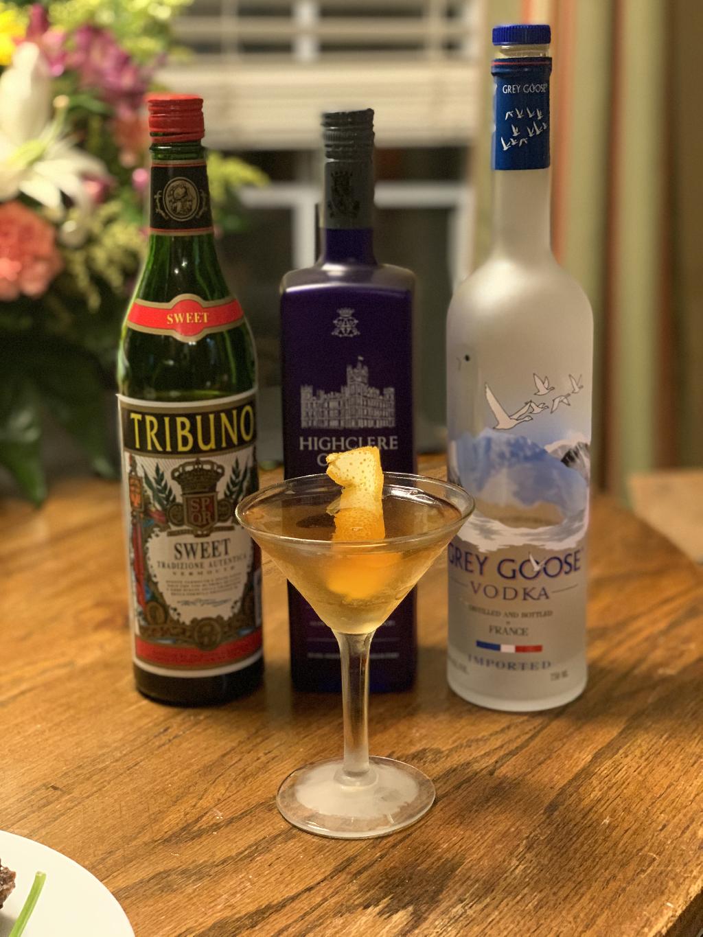 Step #1 Fill shaker with ice. Add Gin, Vodka and Vermouth and shake for 30 seconds.