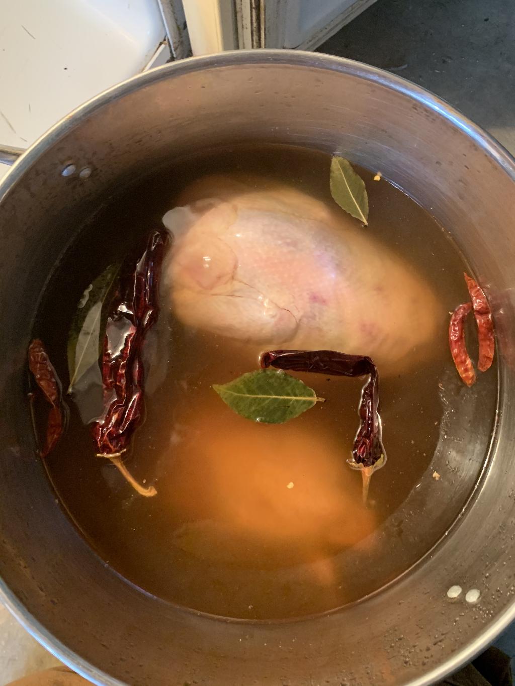 Step #2 Turn off heat and allow to cool. Submerge pheasant in brine and place in refrigerator for 6-8 hours.
