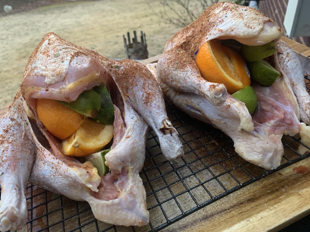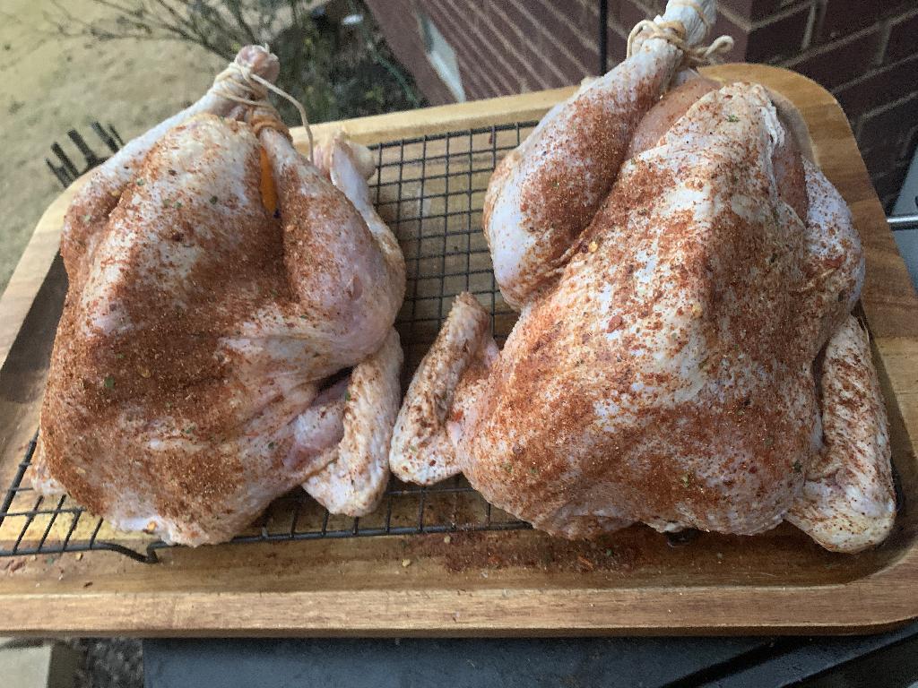 Step #6 Sprinkle seasoning all over the birds, inside and out.
