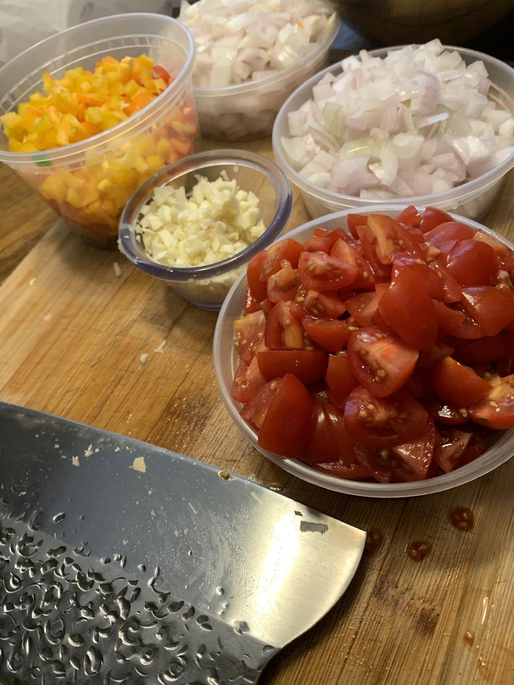 Step #1 Chop Onion, Jalapeno Peppers, Mini Sweet Peppers, Tomatoes and Garlic.