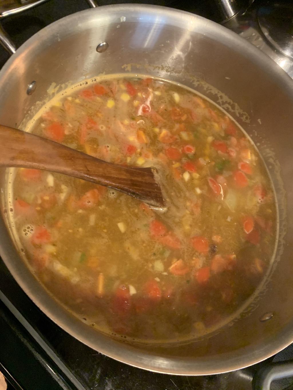 Step #5 Add 1 1/2 tablespoon of Mexican seasoning. Add 6 cups Pheasant Stock
