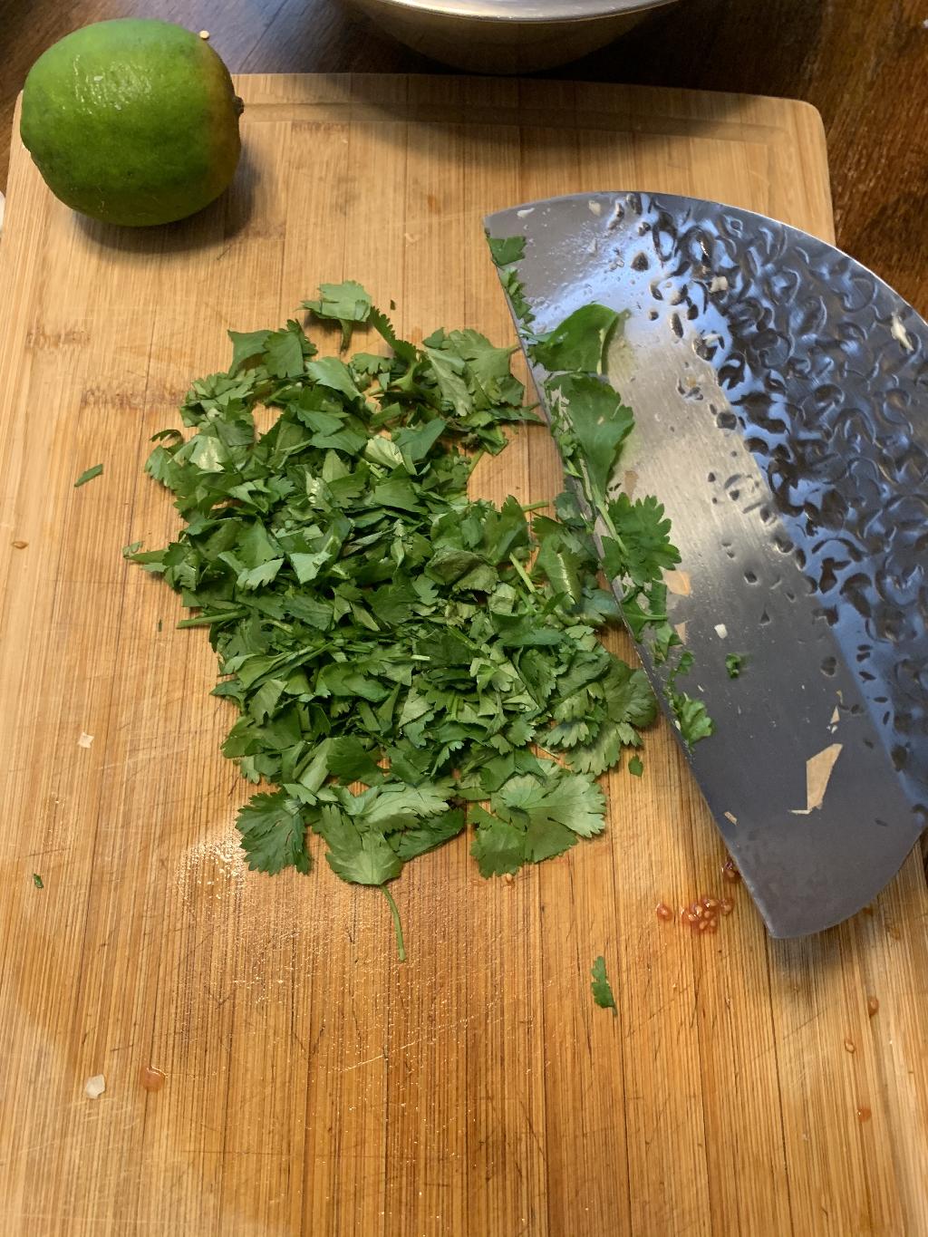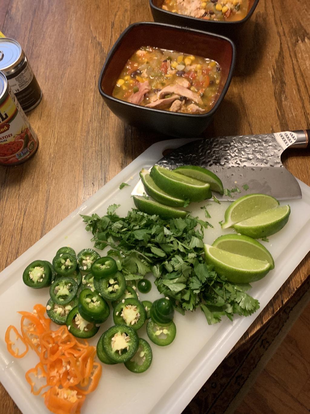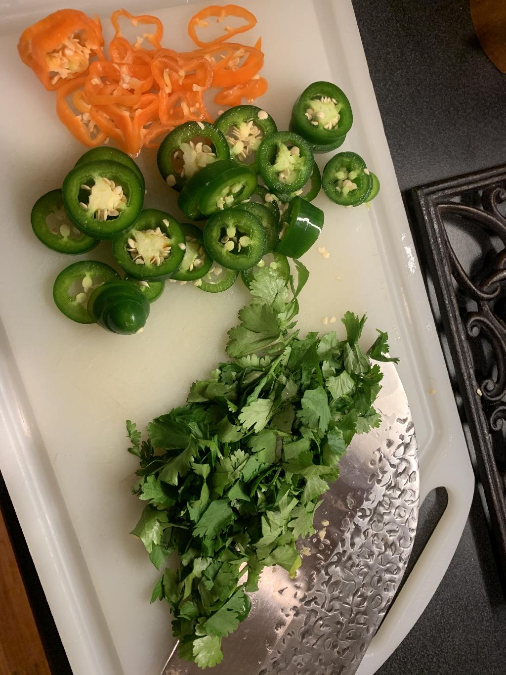 Step #17 Top with Cilantro, peppers, sour cream, cheese and Tortilla chips.