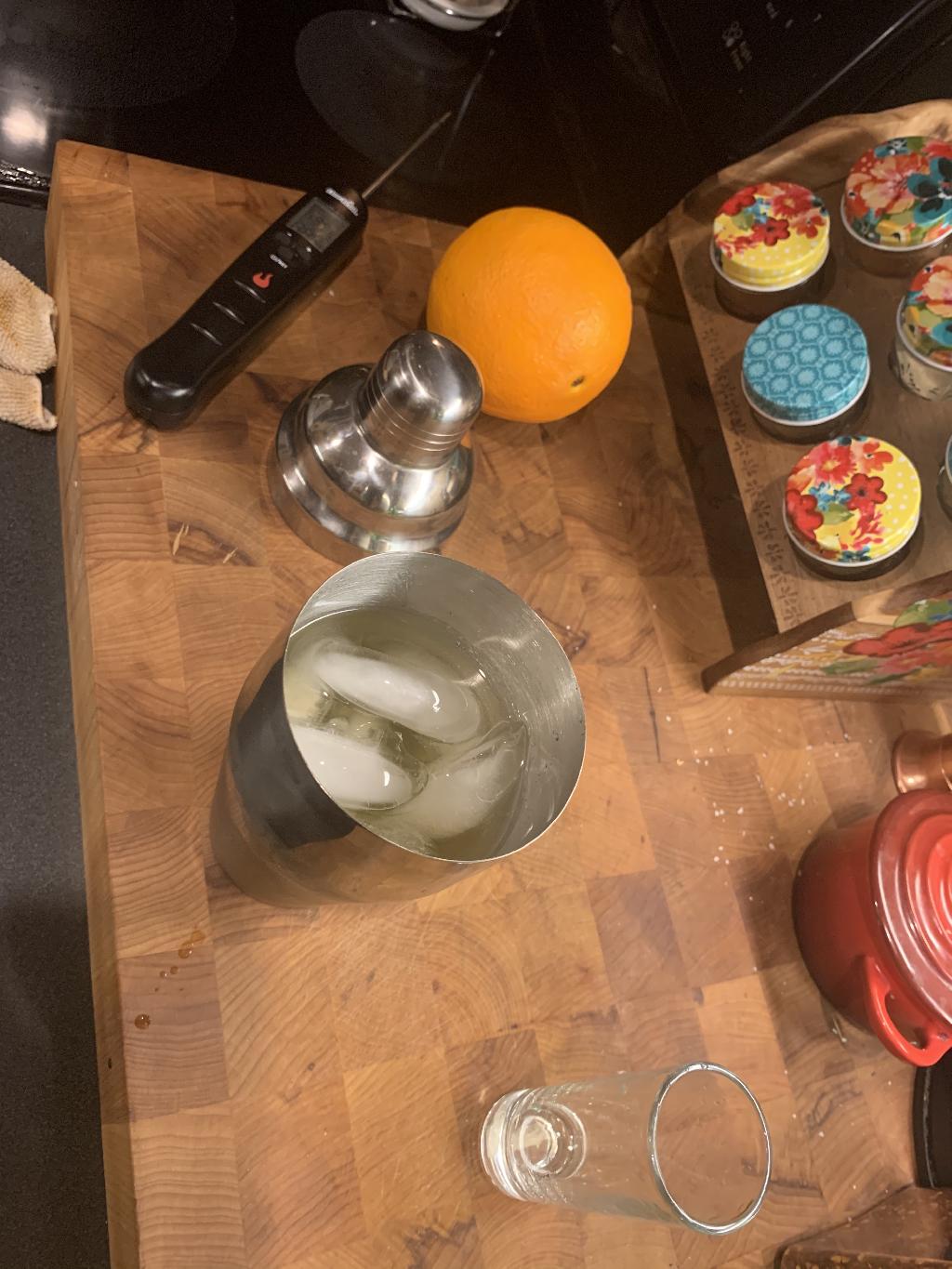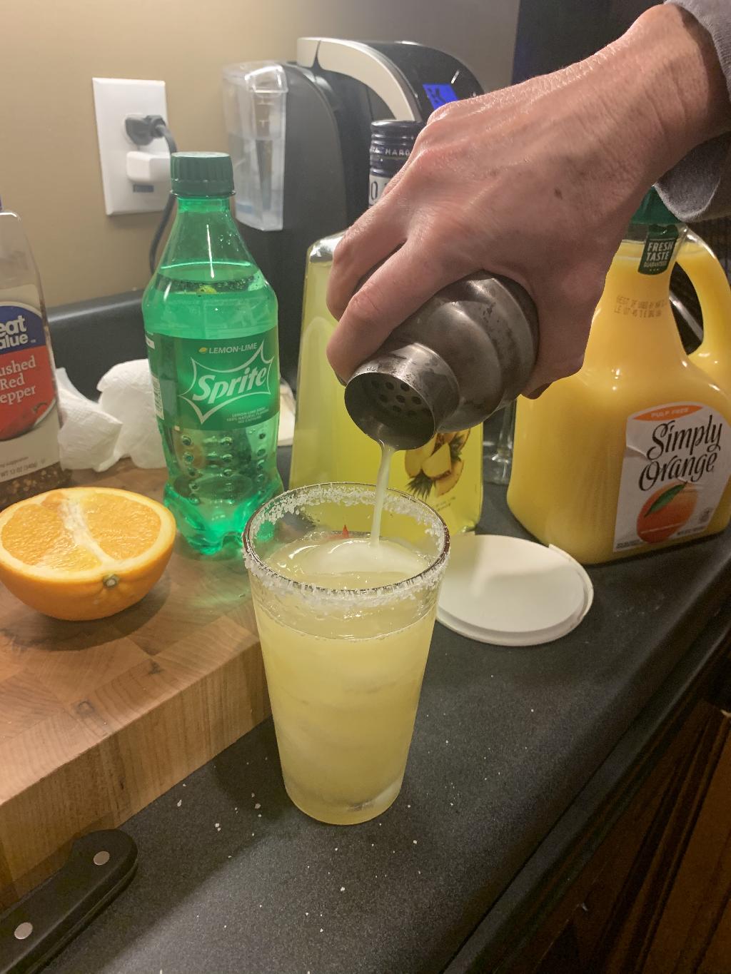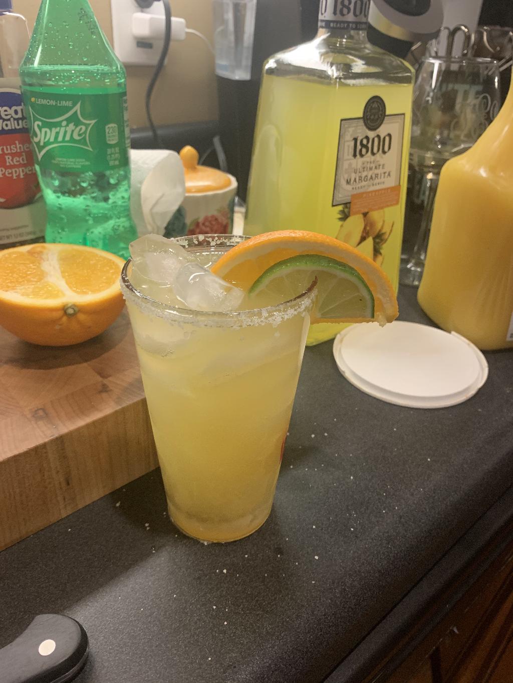 Step #1 Fill shaker with ice. Pour in 6 ounces of Pineapple Margarita Mix, 1 ounce Tequila, 1 ounce of Orange Liquor, 2 ounces of Orange Juice into shaker and give it a good shake.