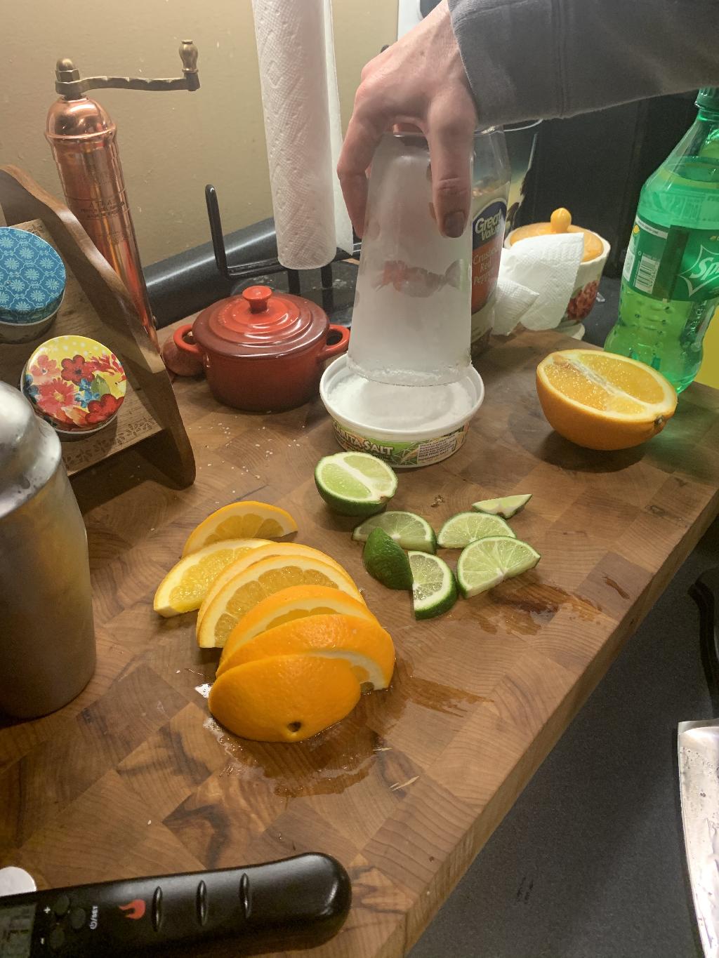 Step #2 Cut lime and run around rim of glass to coat with lime juice, this will help salt stick to glass. Turn glass upside down and twist in Margarita Salt, to coat the rim.