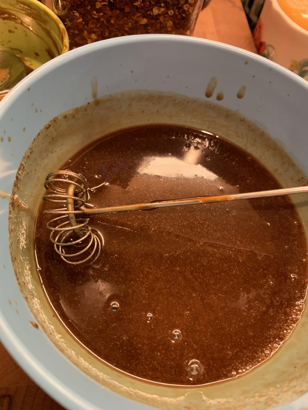 Step #1 Combine Soy Sauce, Hoisin Sauce, Rice Wine Vinegar, Honey, Mirin, Tahini and Chinese Five Spice, in a small bowl, using a whisk to combine