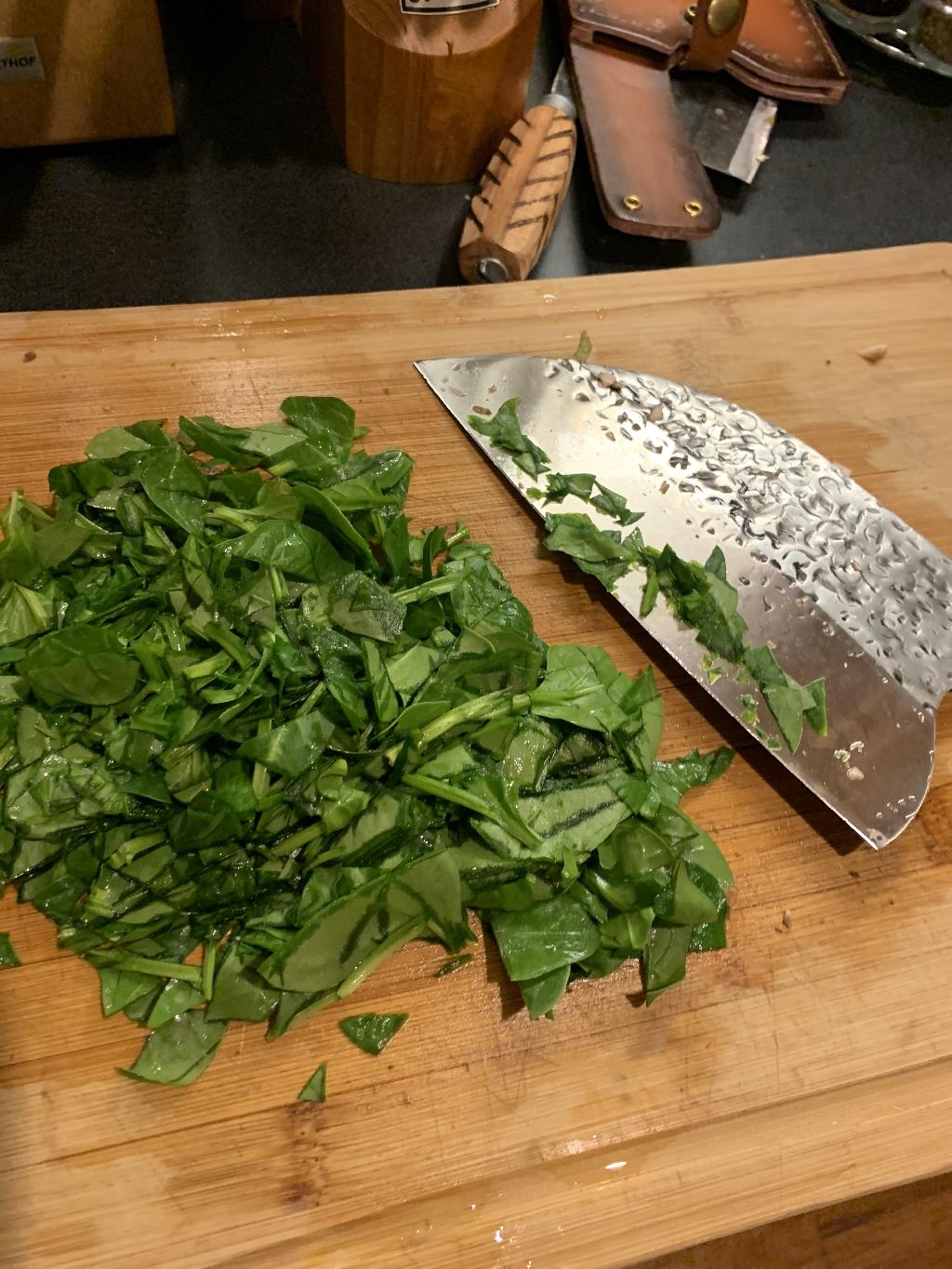 Step #1 Prepare your ingredients for this dish by chopping Spinach