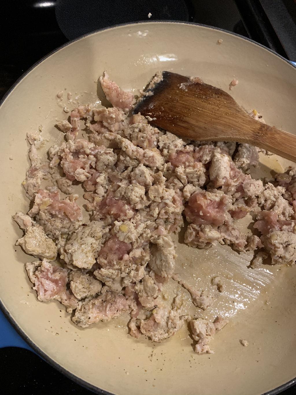 Step #6 Add a sprinkle of salt and pepper. Brown meat for 5 to 7 minutes.
