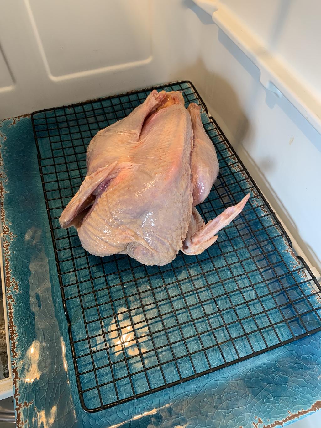 Step #2 Remove bird and pat dry. Place in refrigerator for another hour.