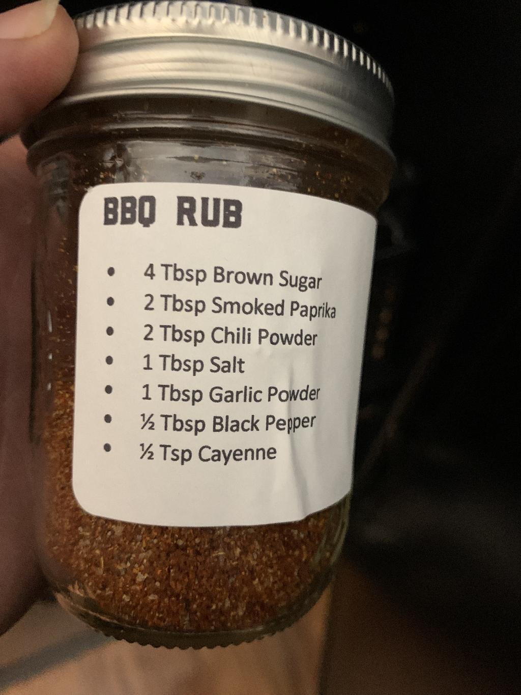 Step #1 While the bird brines, combine the ingredients to make the BBQ Seasoning. Measure out Brown Sugar, Smoked Paprika, Chili Powder, Garlic Powder, Salt, Black Pepper and Cayenne into a small mason jar. Secure the lid and give it a good shake.