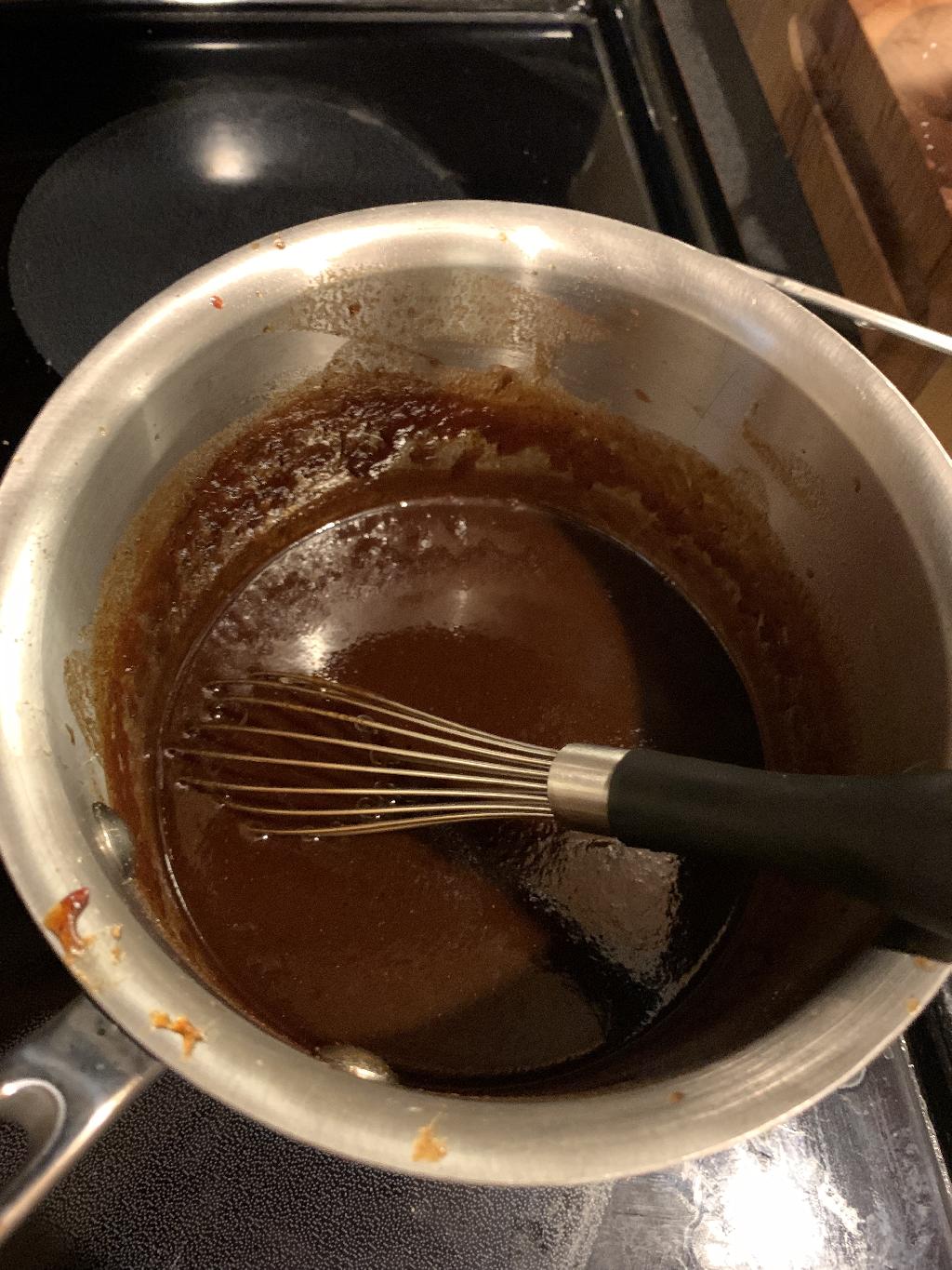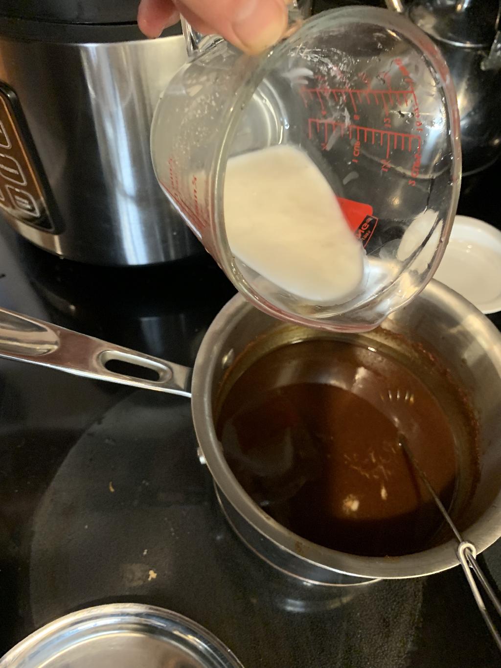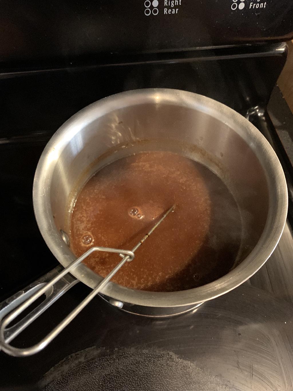 Step #4 If your sauce needs to thickening, mix 1 tablespoon of corn starch which 1/4 cup of cold water, using a whisk to combine then add to BBQ Sauce. Turn heat back up until it reaches a boil, then turn off heat.