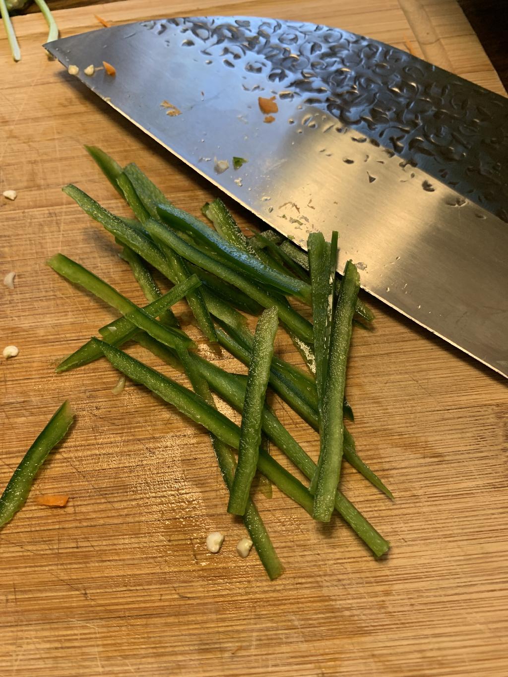 Step #4 Cut your jalapenos into match stick sized pieces.