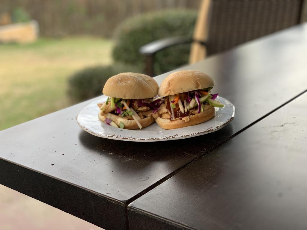 Step #6 Melt 2 tbsp of butter in microwave on low power. Brush melted butter on inside of buns. Set broiler on oven to hi and place buns on cooking sheet. Place in oven to allow to brown for a few minutes. Using thongs, add cooked Shredded Pheasant Breast to toasted bun. Drizzle with some of your BBQ Sauce and sprinkle of BBQ seasoning. Top with apple slaw and serve.