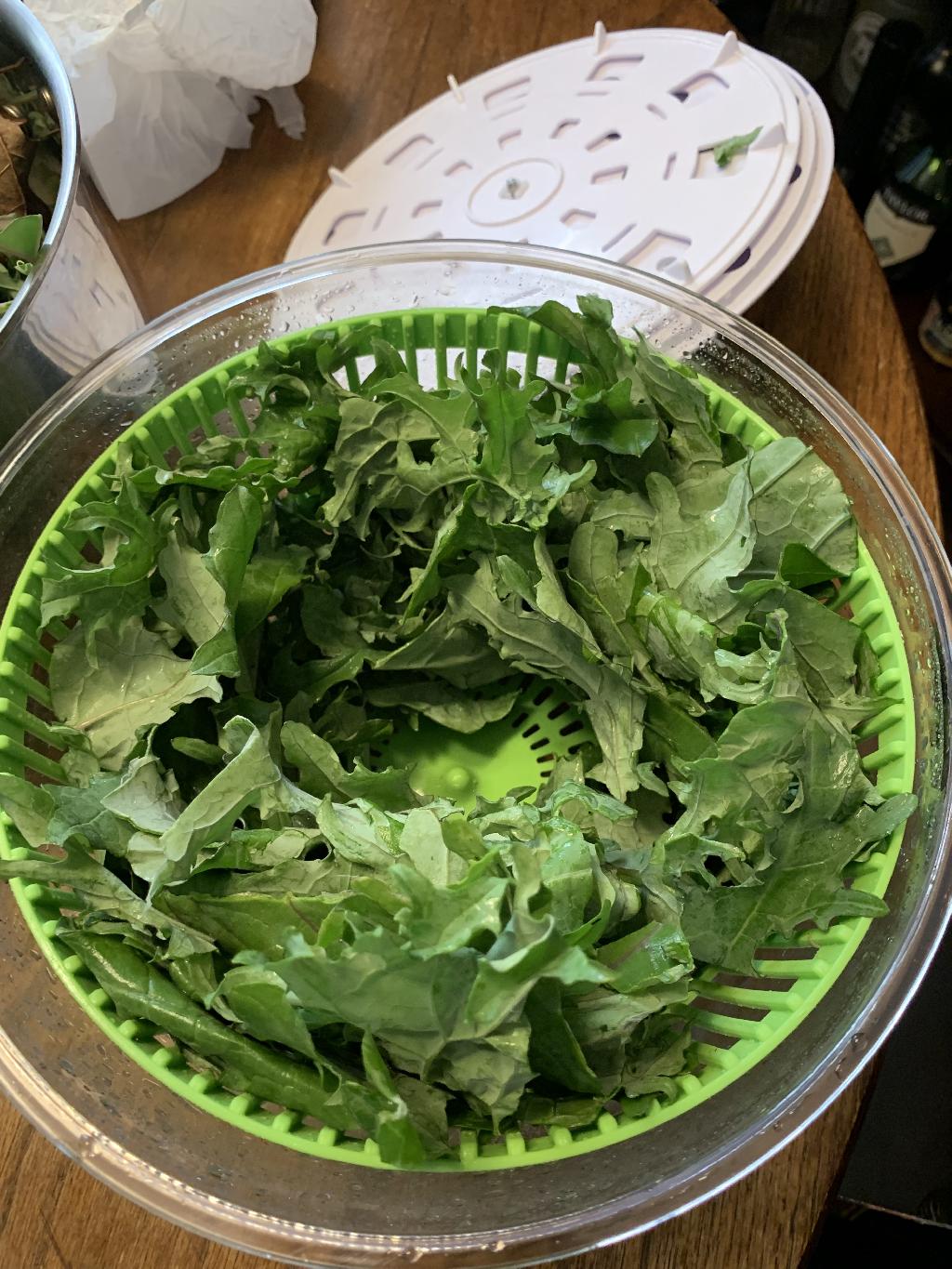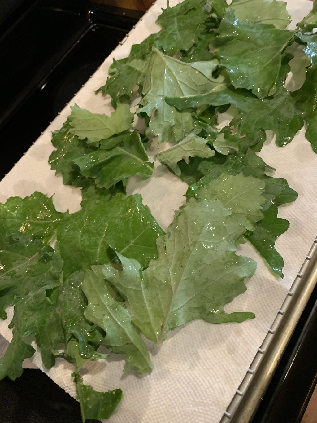 Step #2 Lay the Kale out on paper towels to dry or run through a salad spinner.