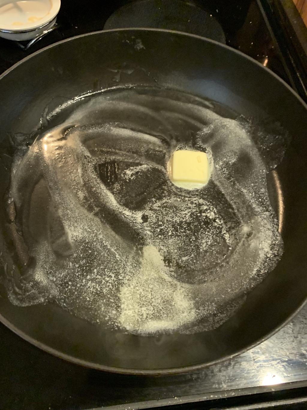 Step #11 Add 2 tablespoons of all-purpose flour to skillet, using a spatula to coat the vegetable in flour and butter. Allow to cook another minute or two.