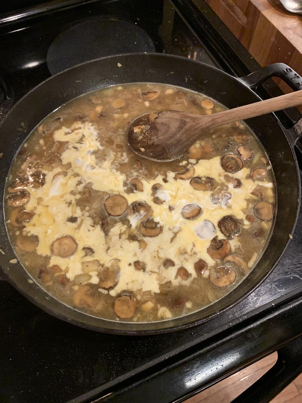 Step #16 Add Heavy Cream to skillet, turn up heat and allow to reach a boil. Reduce heat and allow to simmer for 10 to 15 minutes.