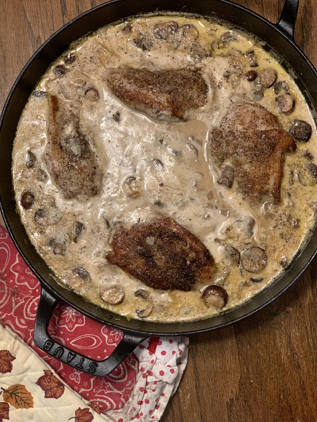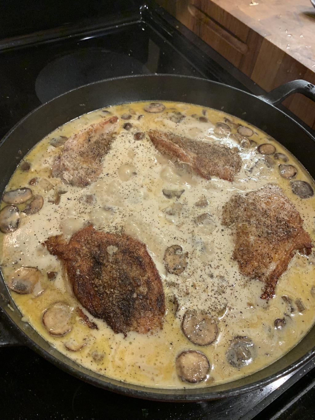Step #17 Tastes your sauce to see if you need to add additional salt and/or pepper. Add the Pheasant Breast to the sauce, skin side up. Cook uncovered for 10-15 minutes, until Pheasant is cooked, about 150-155 degrees. If you Pheasant reaches 155 degrees and your sauce is still too loose. Remove the pheasant from the sauce and allow the sauce to reduce some more. You can mix 1 tablespoon of cornstarch with 1/4 cup of water, then add that to your sauce to help thicken. Pheasant will have some carry over cooking as it sits in the hot sauce.