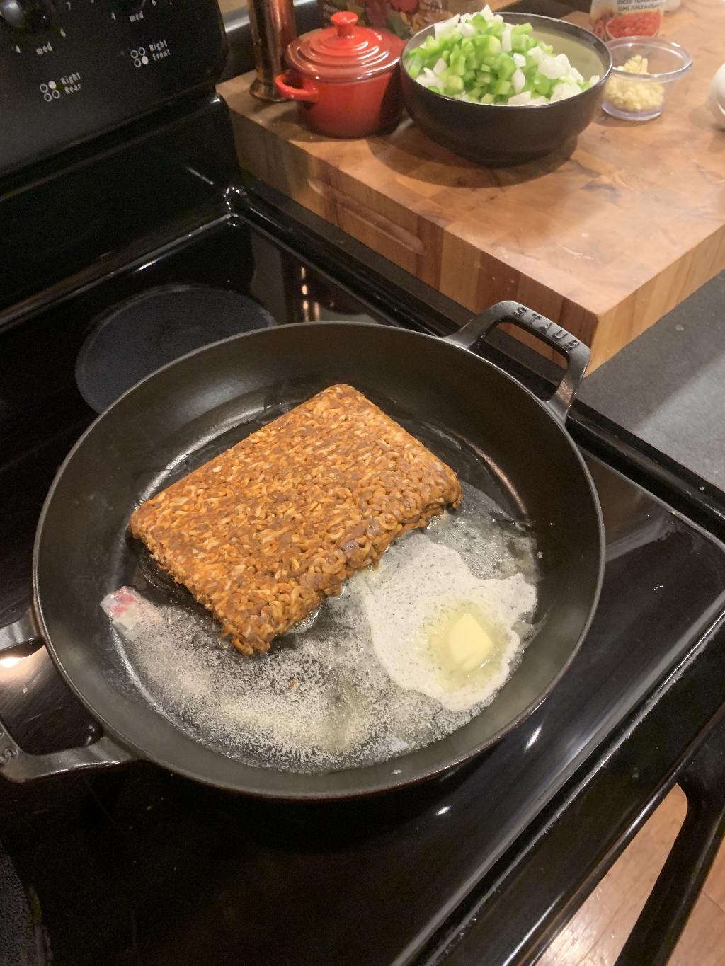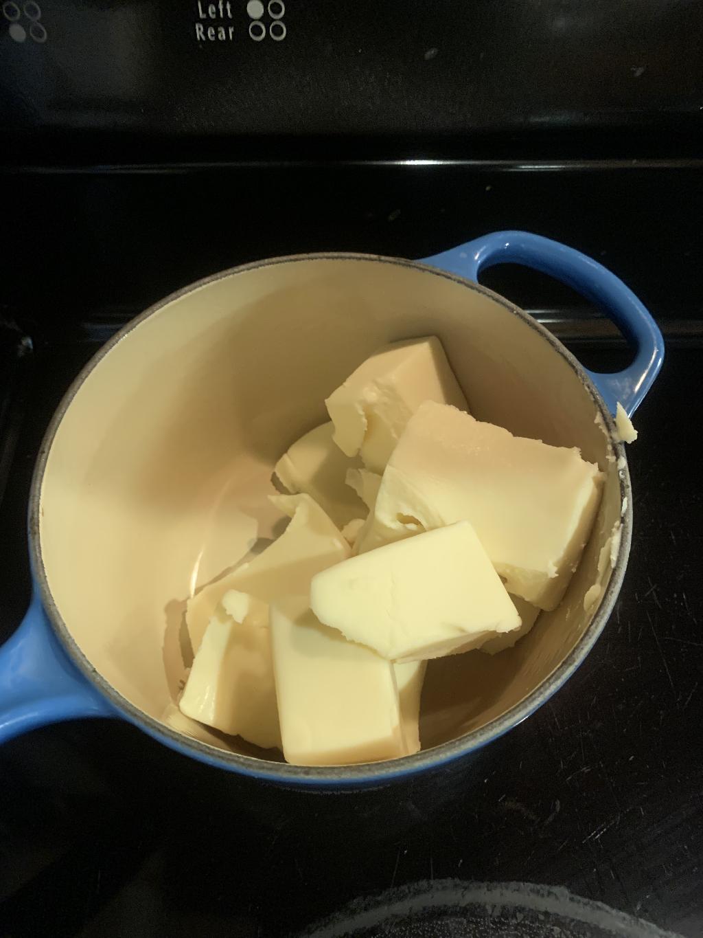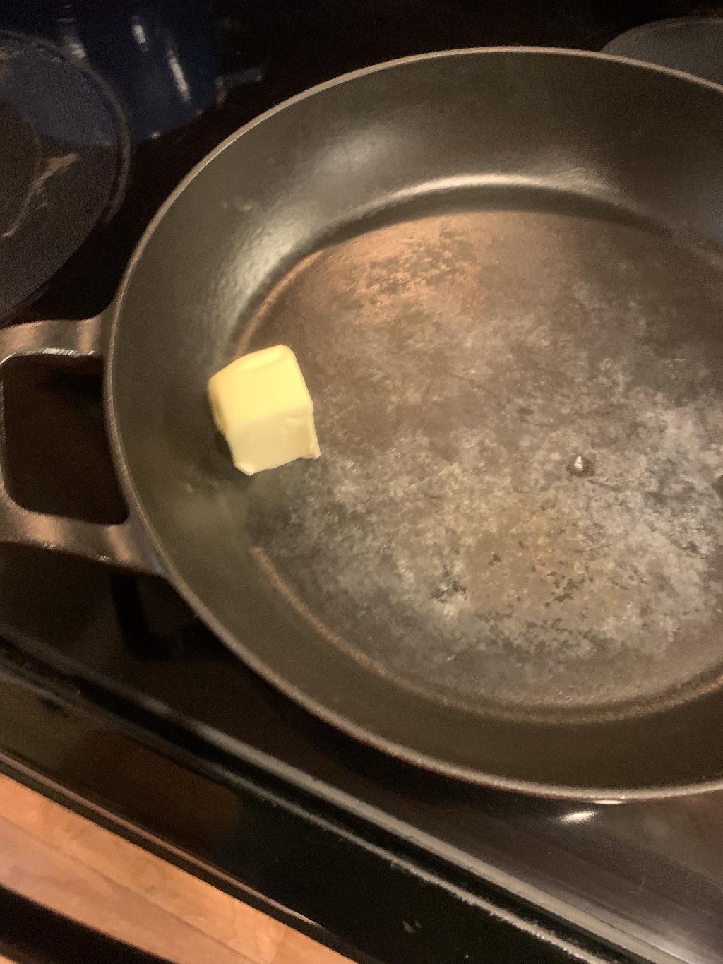 Step #3 Add a large skillet to the stove and set the heat to medium high. Add 2 tablespoons of butter and allow to melt.
