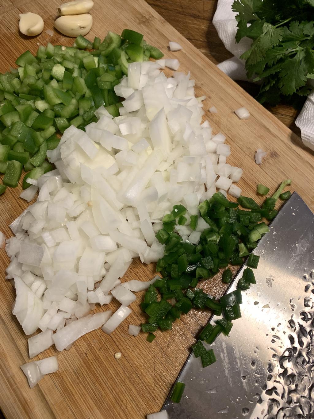 Step #2 Dice up the Peppers, Onion and Garlic.