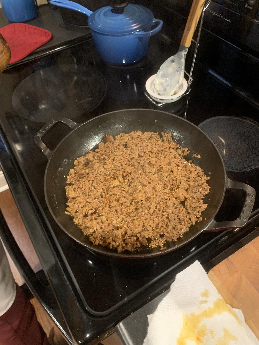 Step #4 Add Chorizo, if it’s in casing, remove the casings.