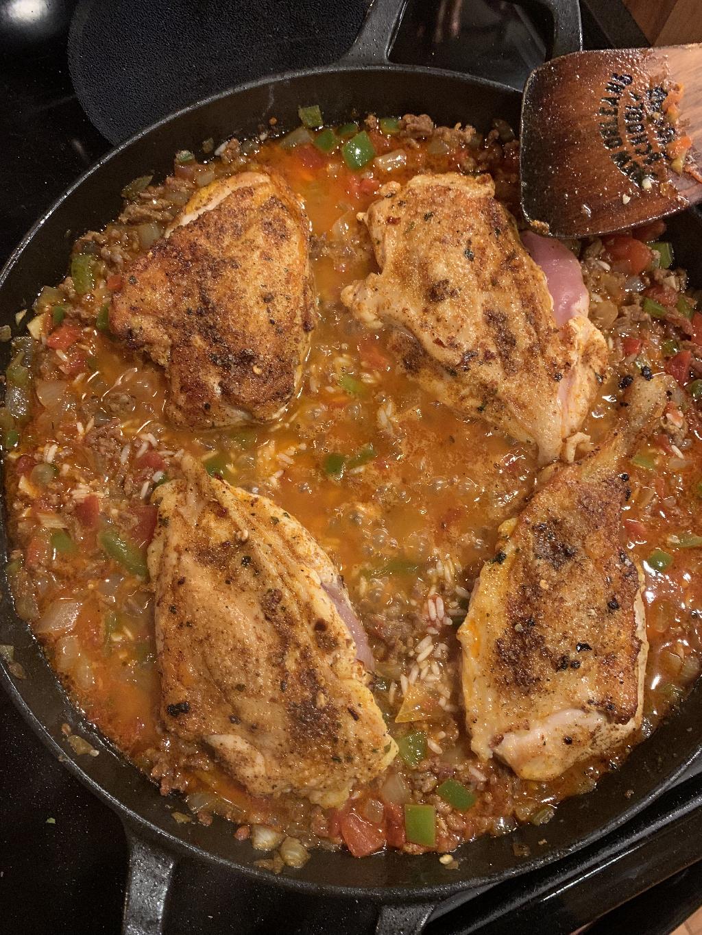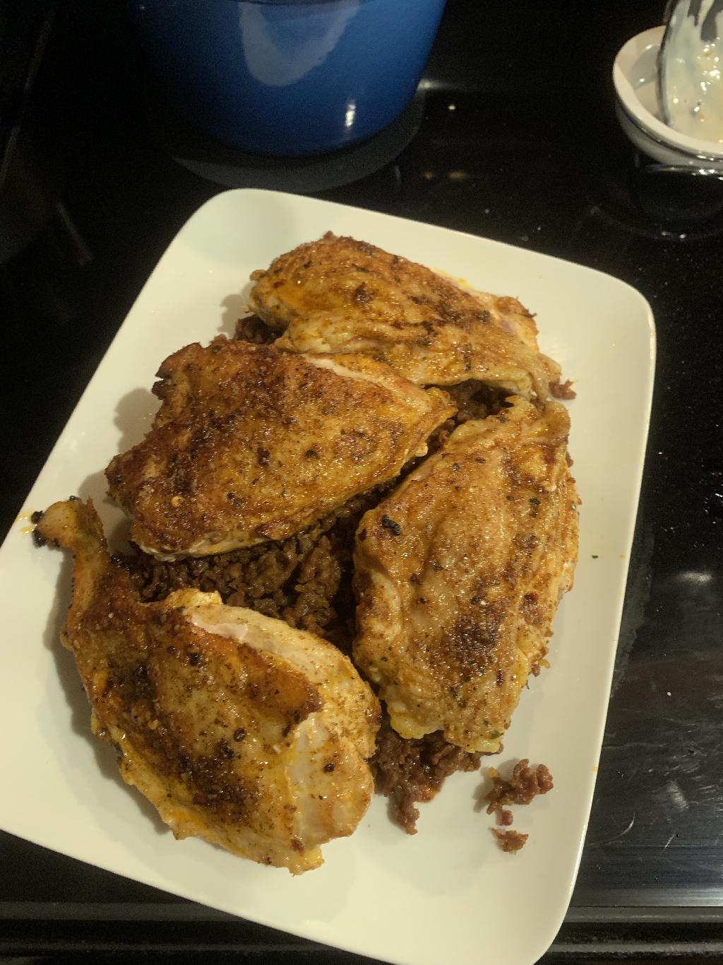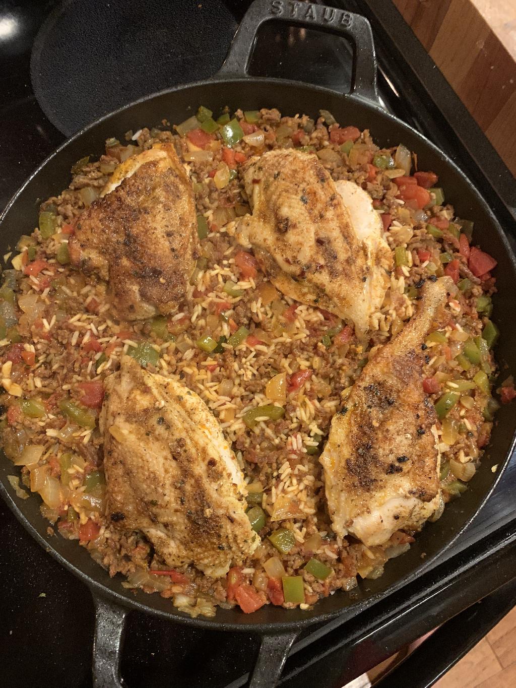Go back to all recipesAfter a long day at work, you don't always feel like coming home to cook food. Sometimes is just easier, and more relaxing to just jump in the car and drive down to one of the local Mexican restaurants for some good food and few margaritas! Me and my wife each have our regular meals that we get there, my two favorite go-to meals are the El Preferido and Tacos De Alambre. The El Preferido, is strips of chicken breast, covered with cheese sauce, to which I usually have them add Chorizo and Cilantro. I tried to create my own version of this at home several months ago, you can find it listed with my other recipes, as "Mi Favorito". I must say, it turned out pretty damn good and the longer it sat, the better it got, one of my favorite meals, hence the title. This recipe is going to be very similar, with a lot of the same ingredients. I got off work a little early one Monday and since it would be a while before my wife got home, I decided I'd just cook dinner for the both of us. I didn't want to spend all night cooking and I didn't want to dirty up a lot of dishes that I'd just have to clean up later, so this one skillet, Arroz Con El Faisan, seemed like a really good choice. Arroz Con El Faisan, basically just means rice with pheasant.