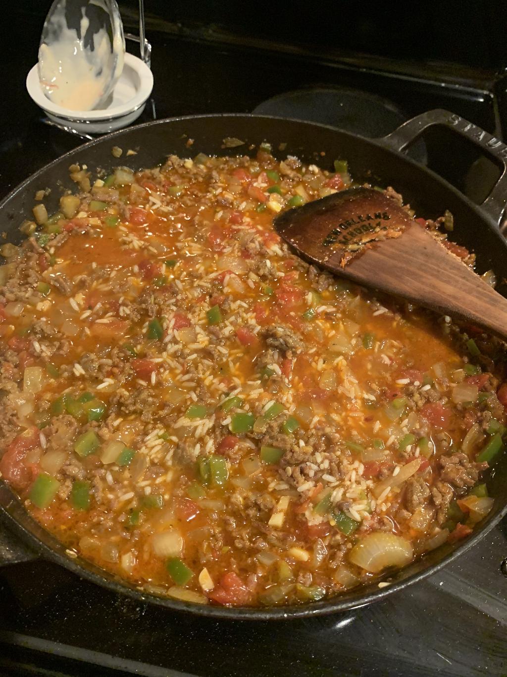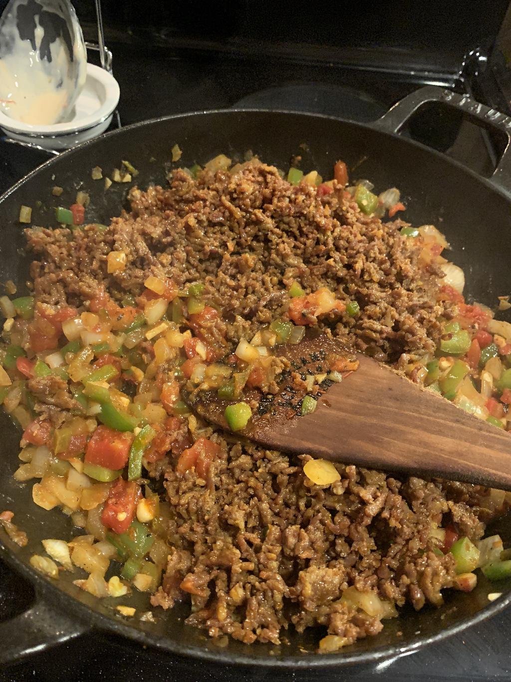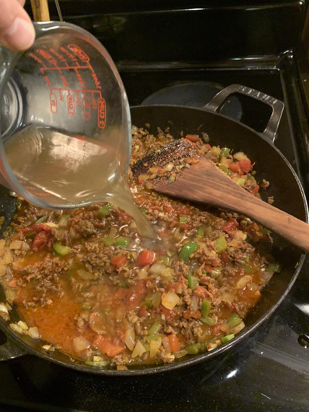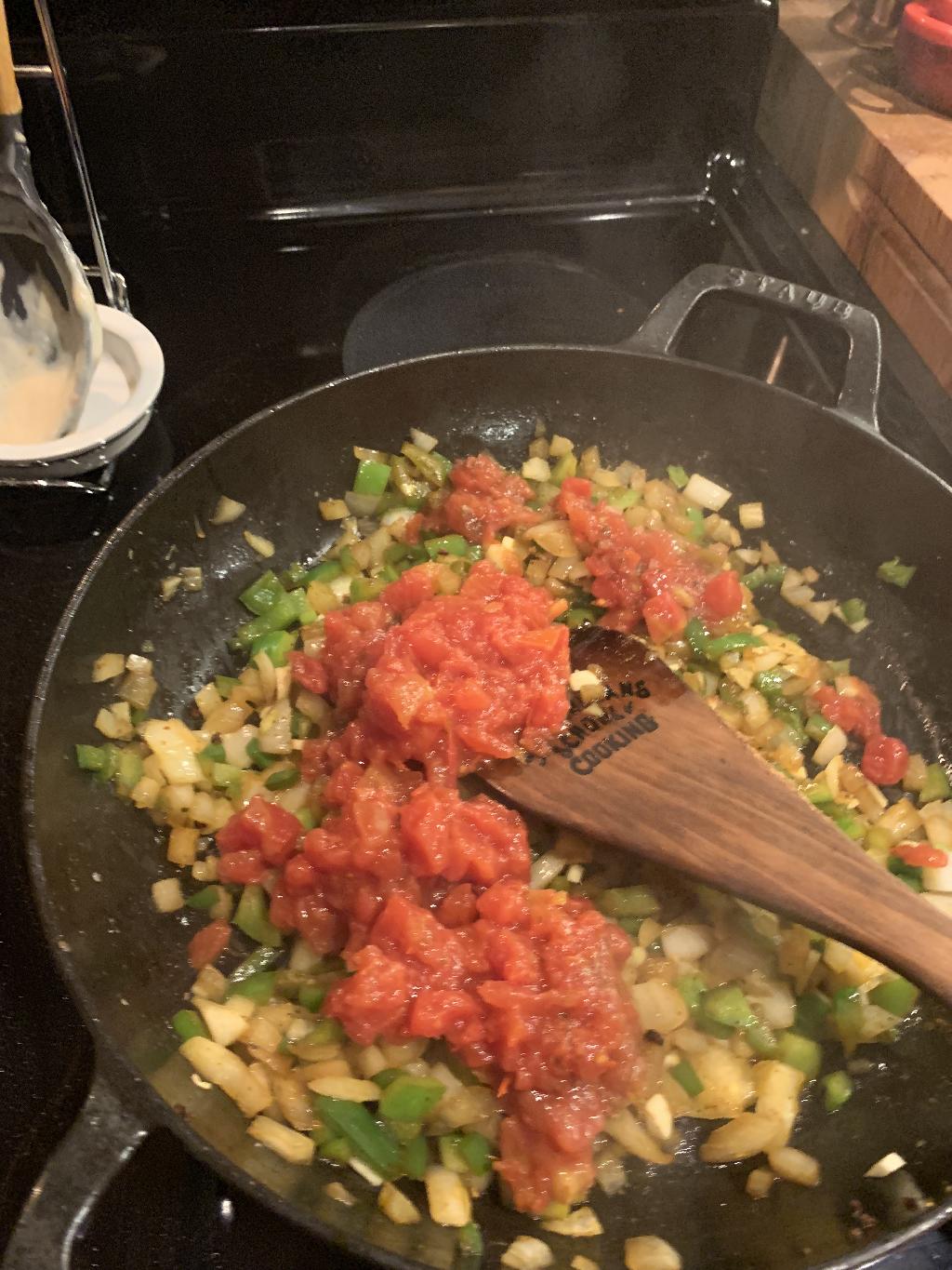 Step #13 Pour in can of Rotel Tomatoes and allow juices to cook off.