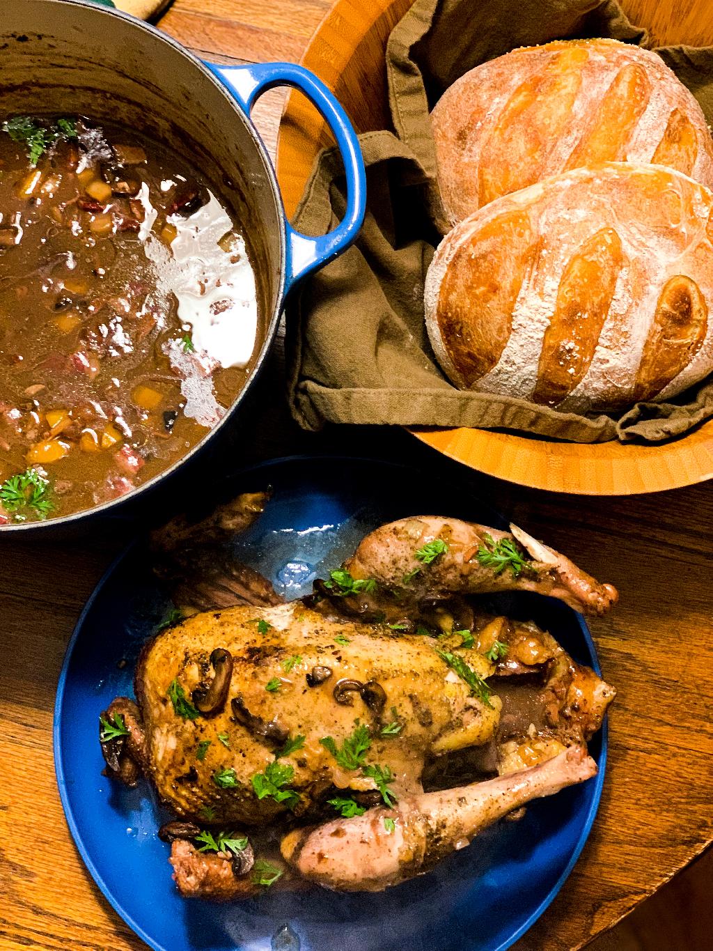Go back to all recipesI keep a list of meals I want to attempt for Gundog Central and that list seems to constantly get longer and longer. This Coq Au Vin has been on there for a very long time, I've struggled with how I wanted to make it. Not that I didn't know how to make it, I've made before, at home with my wife multiply times. It's a lot like making Beef Bourguignon, which has a very similar process. I just hadn't tried to make it with any wild game before. I thought about this a long time, even jotted down ideas in a notebook about different things I might try. This is something that I knew I wanted to make, but just wasn't sure how I wanted to go about it. This is actually one of the first recipes I wanted to post on Gundog Central, I was just conflicted and my indecision kept letting me put it off.