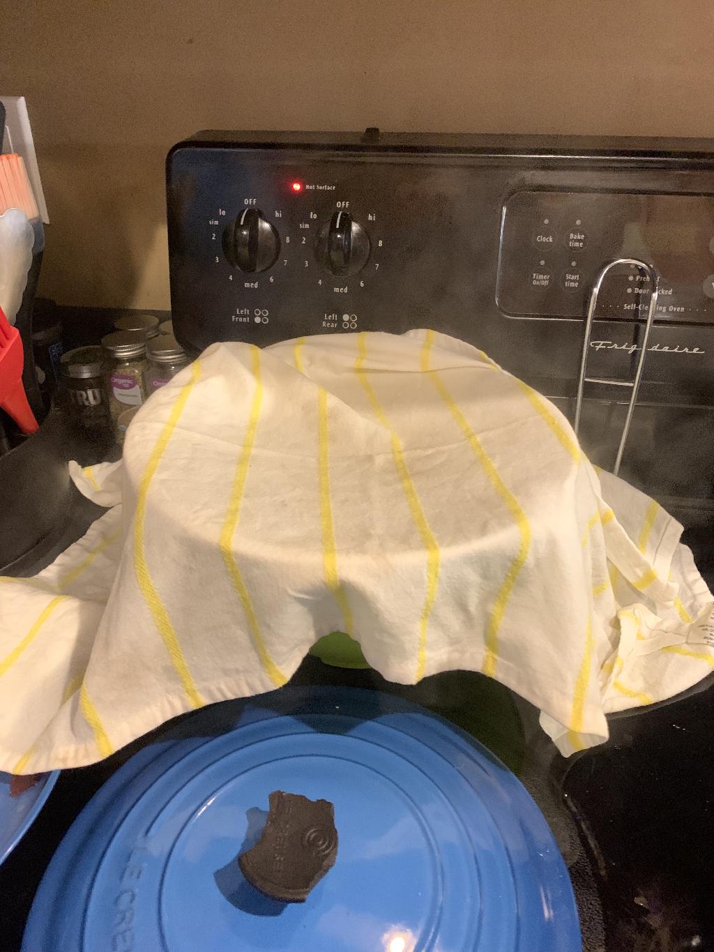 Step #7 Put damp towel in microwave for 3 minutes, to get it nice a steaming, be careful handing towel, the steam can burn. Place the towel over bowl and set in a warm place to rise.