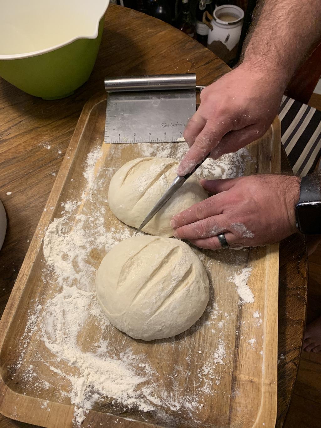 Step #12 Using a sharp knife, cut a few slits across the top of each loaf. The slits can be diagonal lines or crisscrossing.
