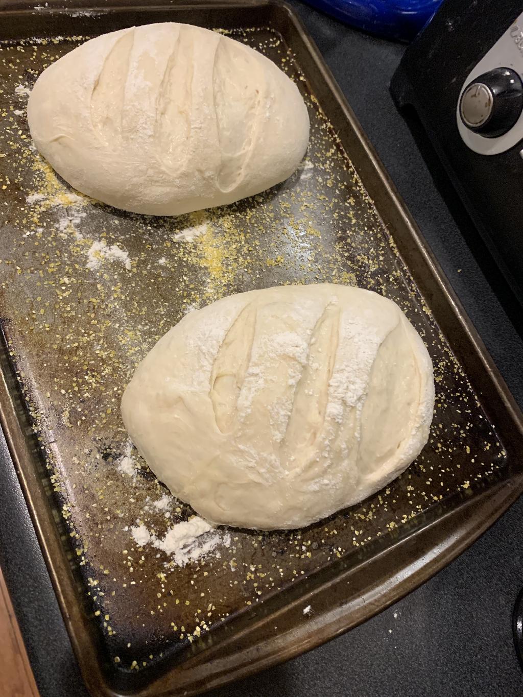 Step #11 Form the two dough balls into loaf type shapes and place on baking sheet.