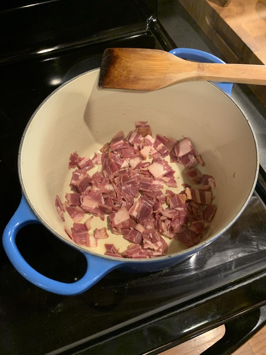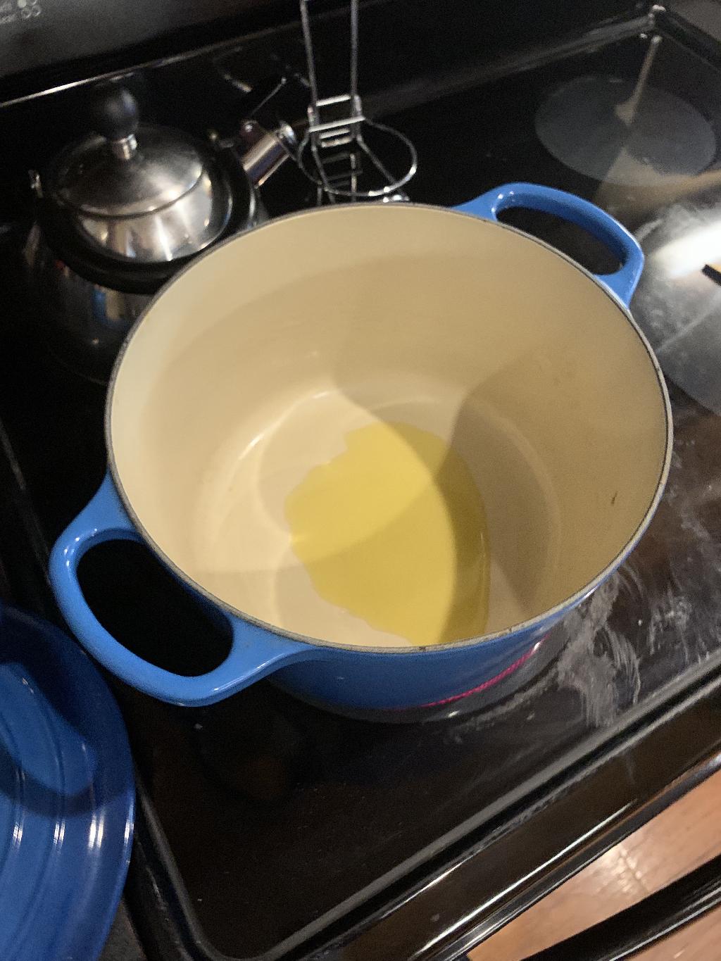 Step #4 Add Olive oil to large Dutch Oven and set heat to medium high.