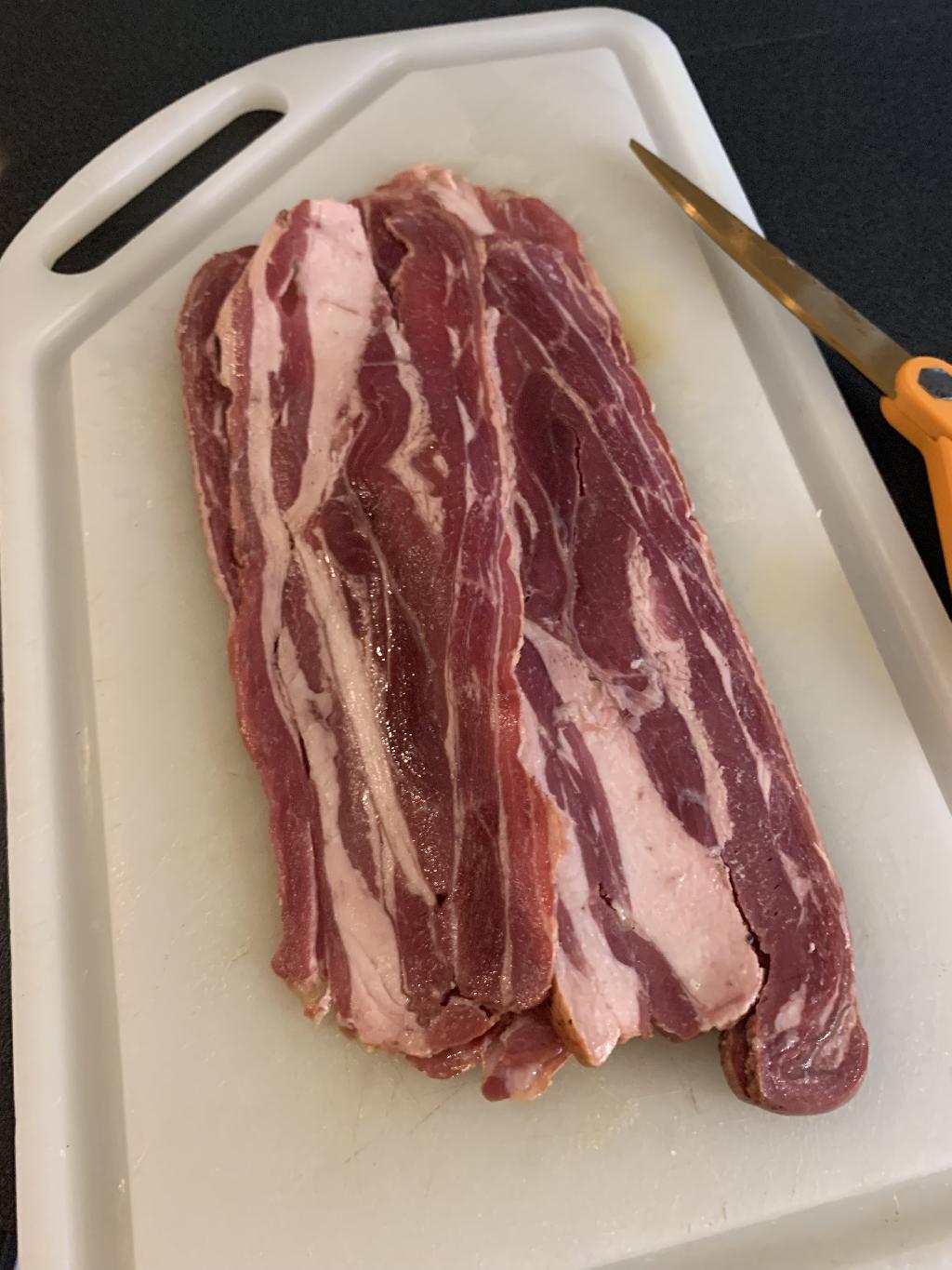 Step #5 Gather your bacon and a pair of kitchen shears or sharp knife.