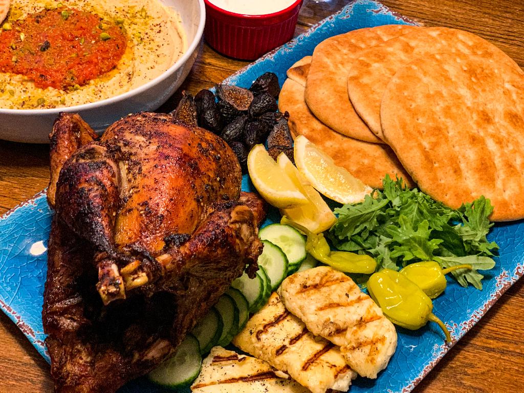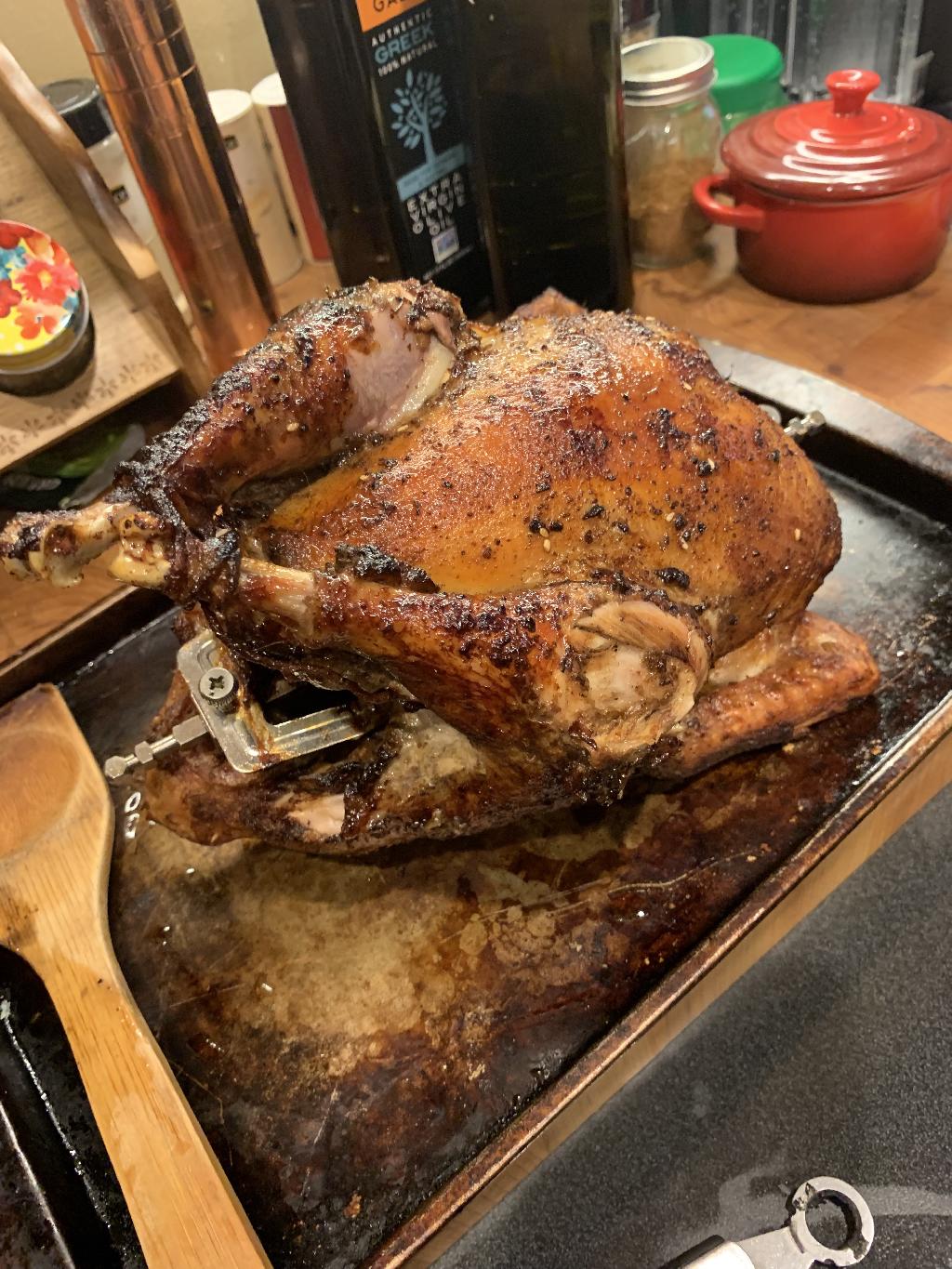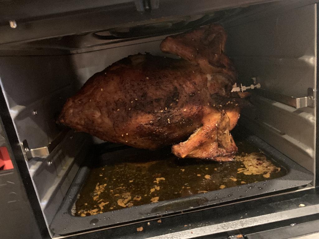 If you don't know what a Shawarma is, it's basically marinated meat, stacked on a skewer and slowly cooked as it turns on a spit. It's then shaved off into thin slices and used on a sandwich or wrap, sort like the Mexican dish, Tacos Al Pastor ... if you ever heard of that. When I think about Shawarma, I think of it more as a Jewish meal, but the process of cooking the meat on a rotating spit originated in what is now Turkey. While not the exact the same thing, I've been wanting to do a rotisserie bird recipe for some time, and this seems liked a good opportunity to work that in. The rotisserie slows turns the meat on its axis while cooking the meat in its own juices.