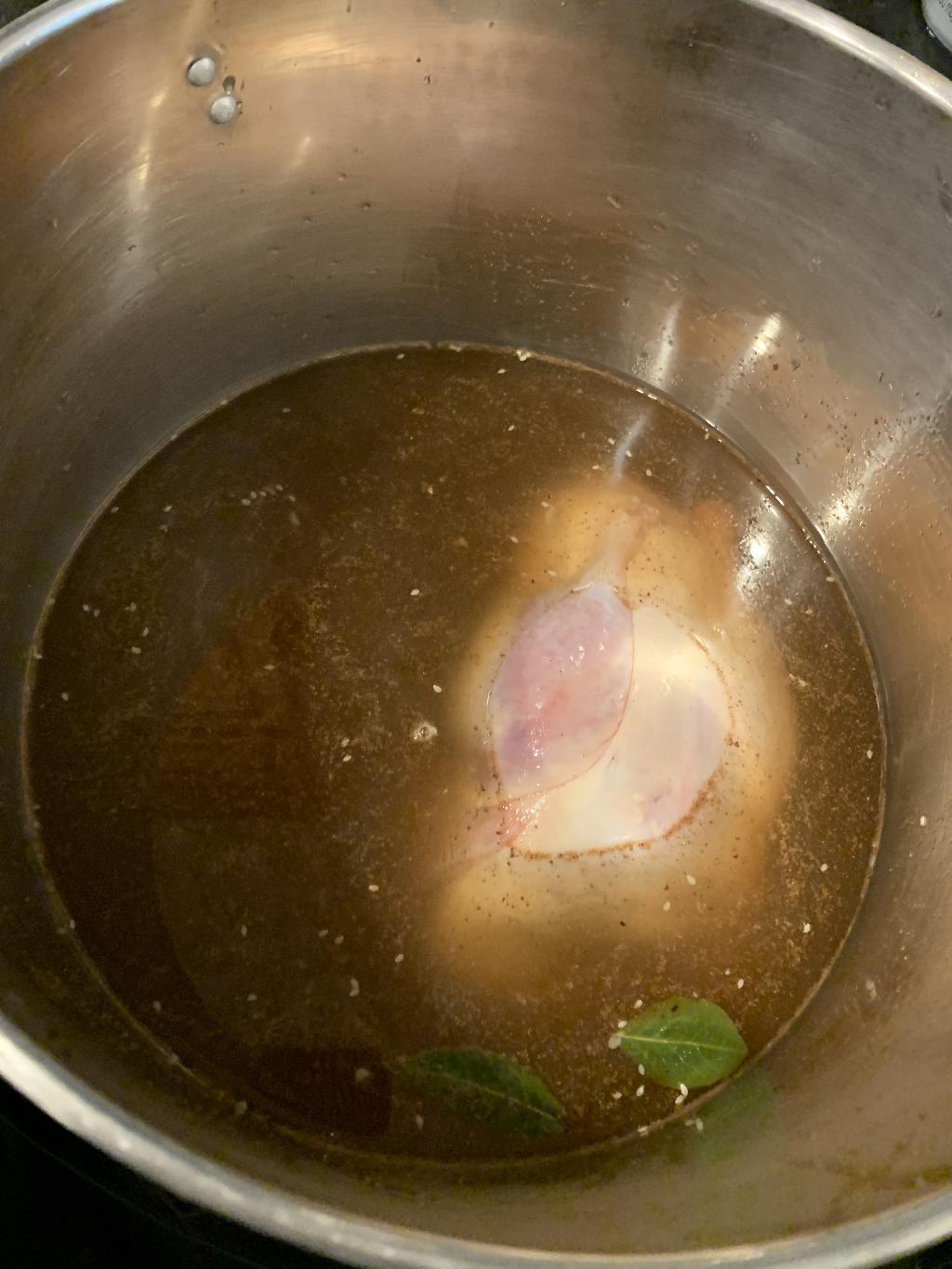 Step #2 Remove small saucepan from the stove top and pour contents into a large stock pot. Add 6 cups of cold water and allow to cool to room temperature. Once cool, add pheasant to brine and place in the refrigerator for four to six hours.