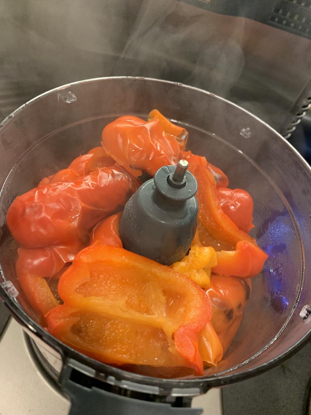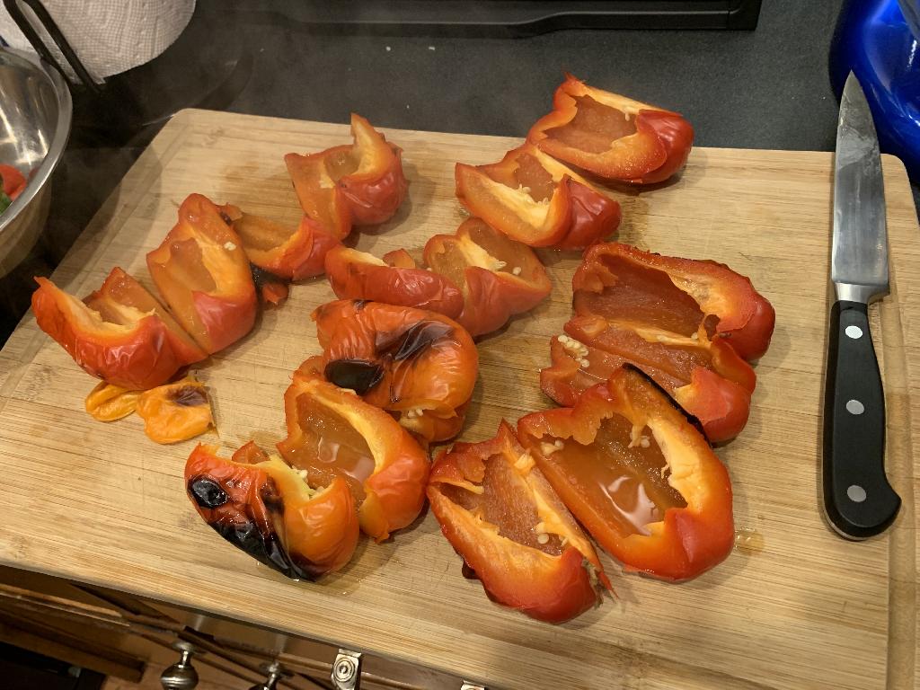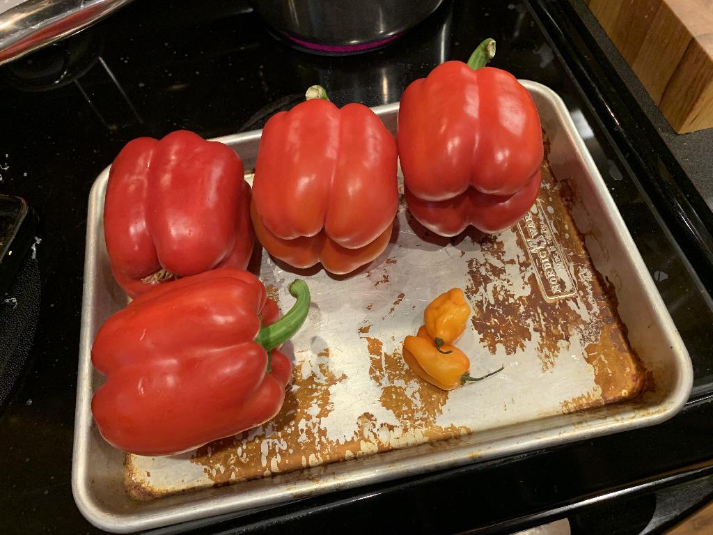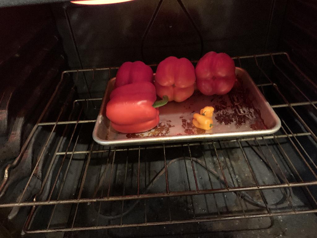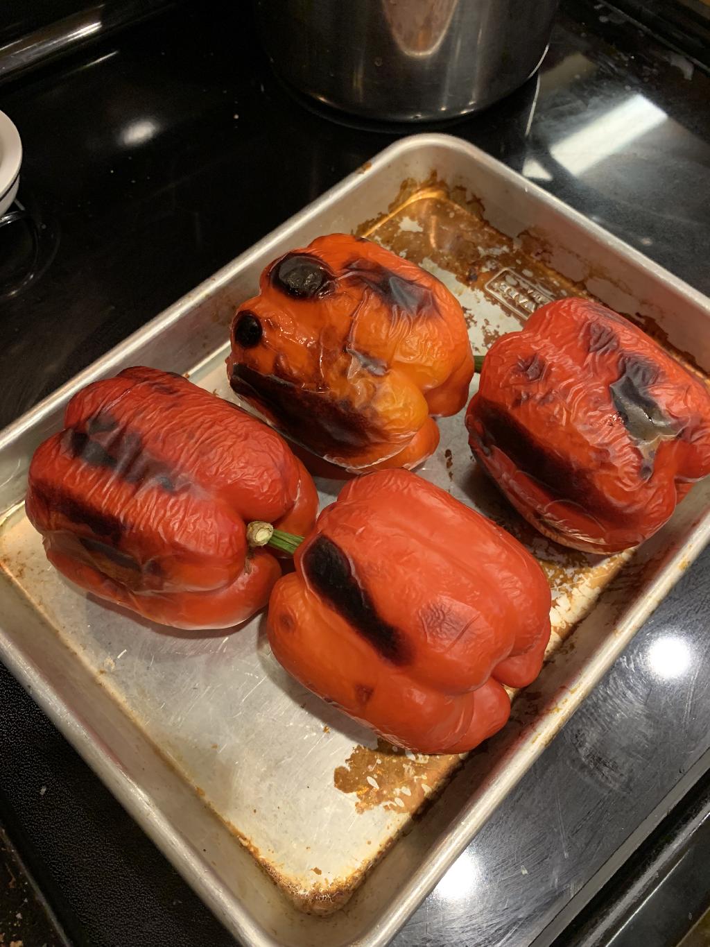 Step #3 Take the peppers out of the oven once all sides have charred.