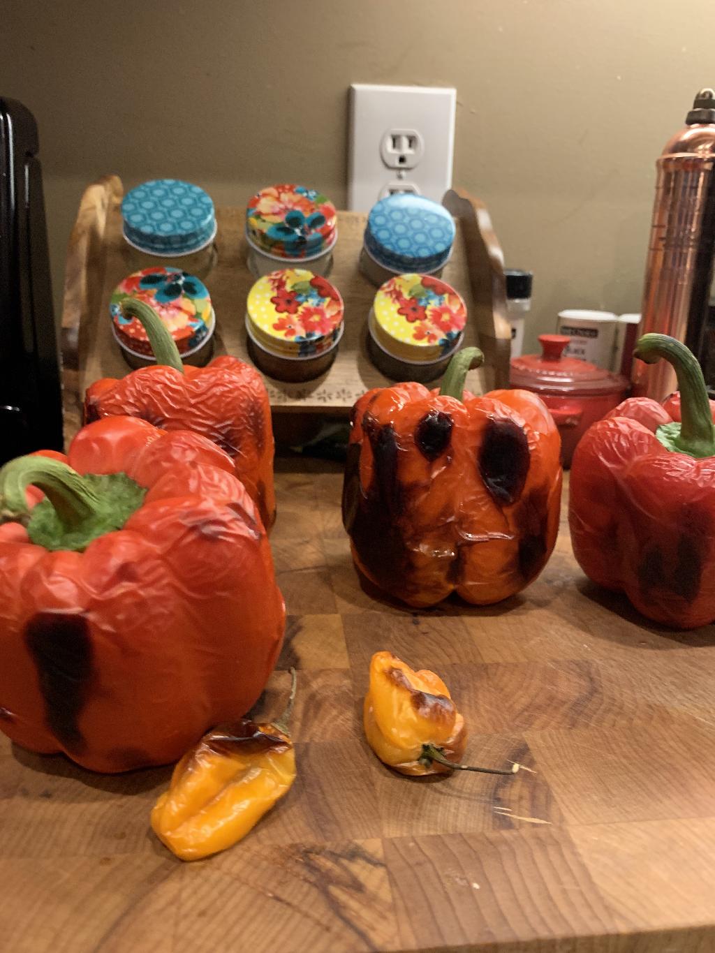 Step #2 Set the oven to HI broil and place the peppers in the oven. Keeping a close eye on them, turning them as they start to blacken up.