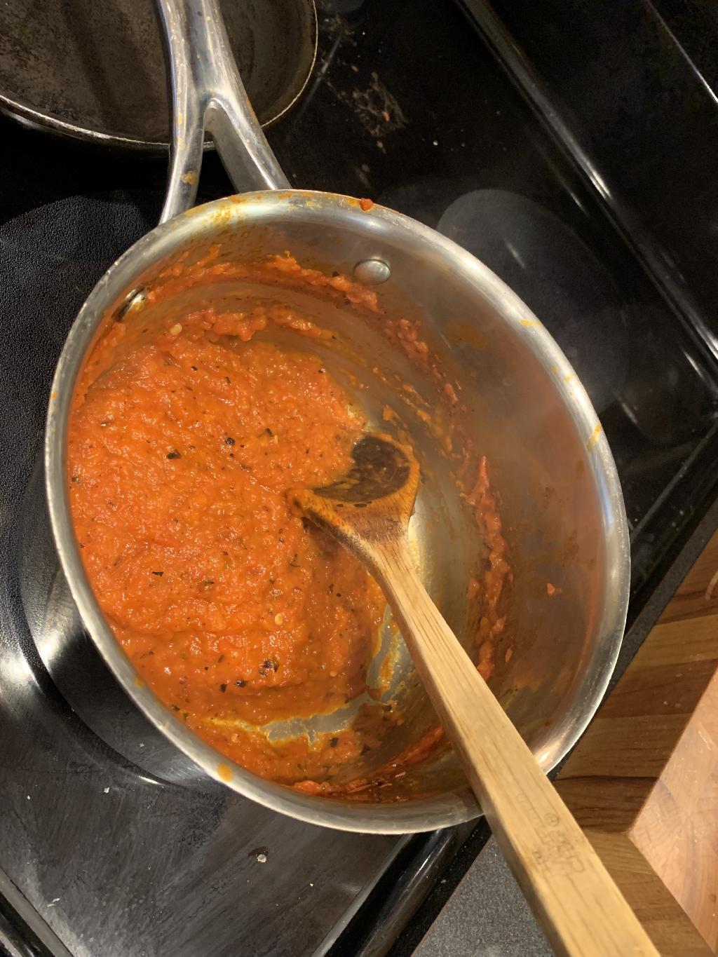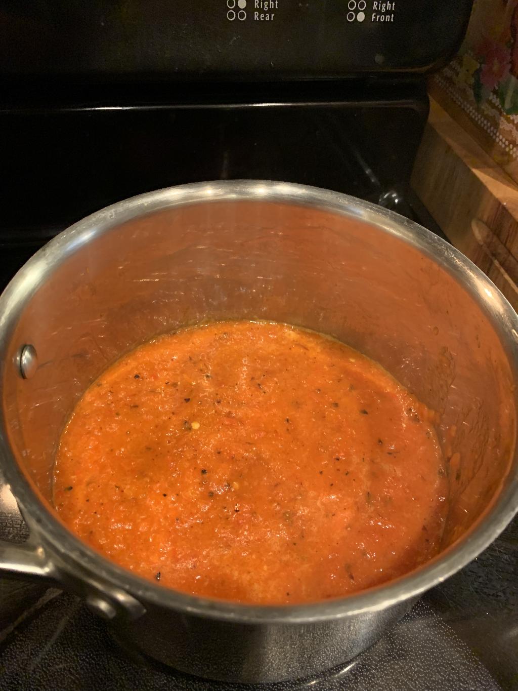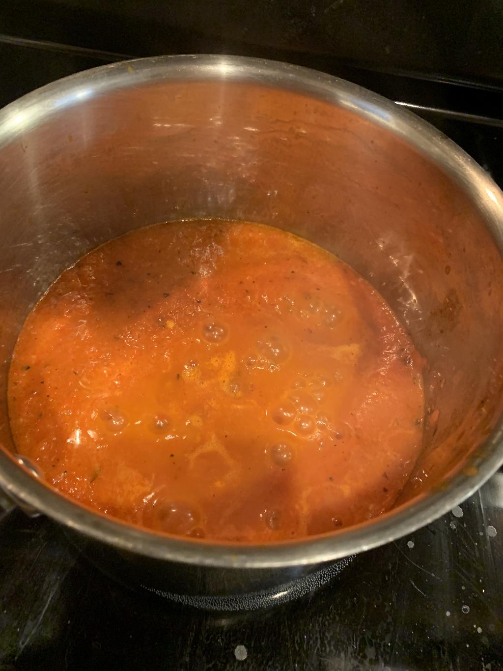 Step #11 Bring to a boil, then reduce to a simmer and cook off some of the moisture.