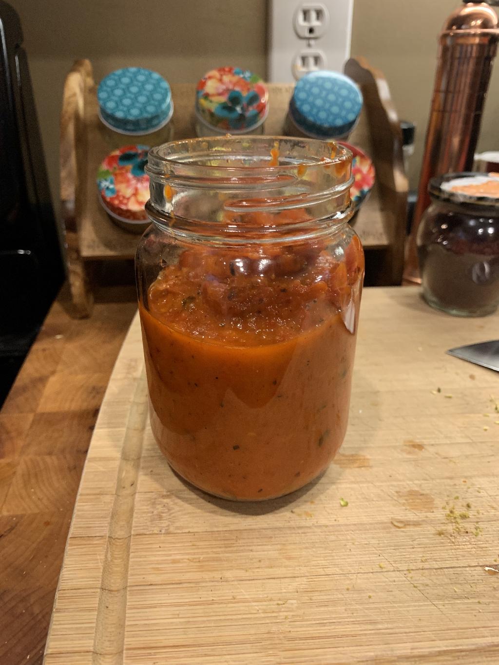 Step #13 Pour the red pepper paste into a small jar and place in the refrigerator until ready to use.