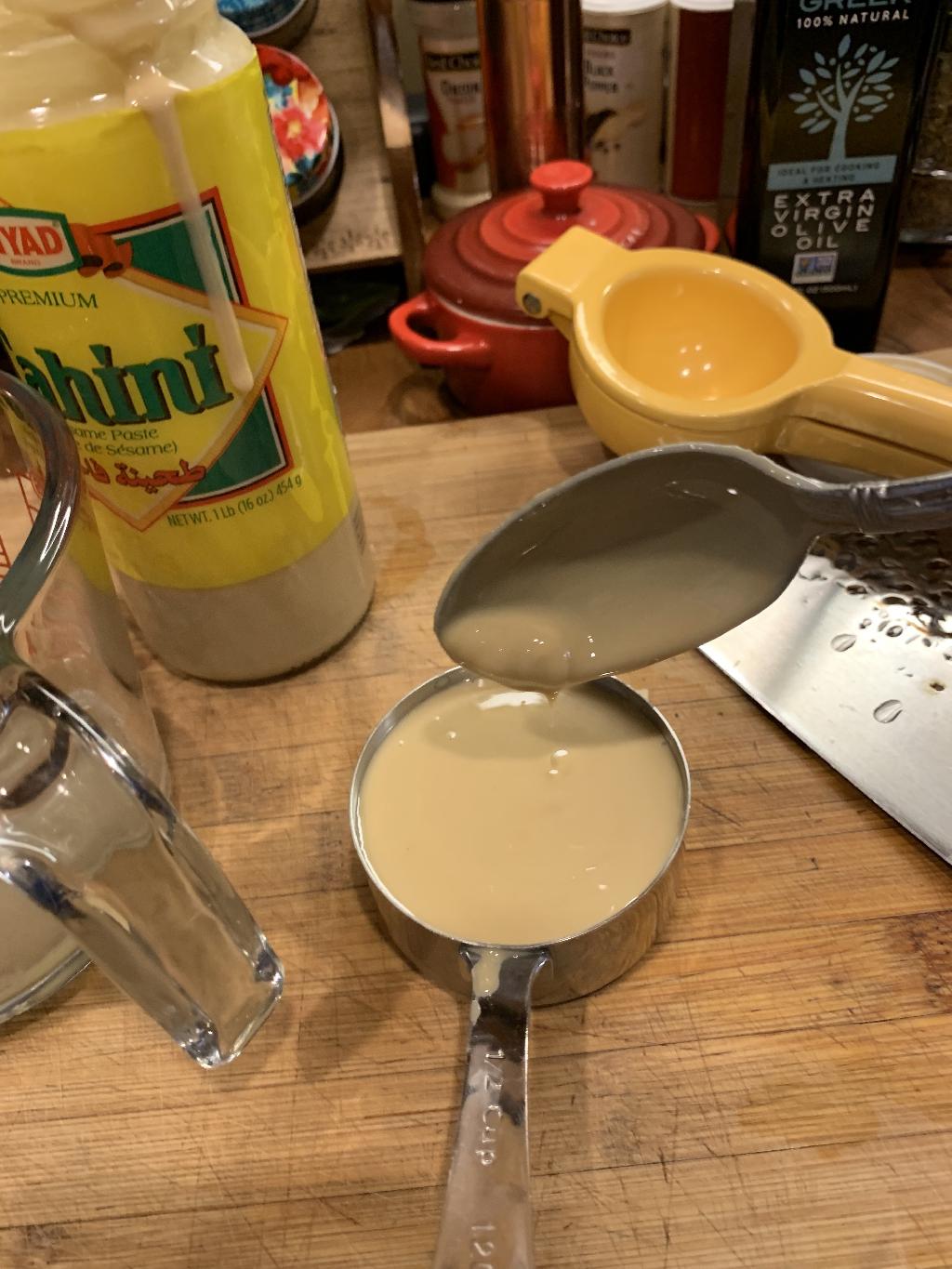 Step #2 Measure out Tahini, then add to your measuring cup.