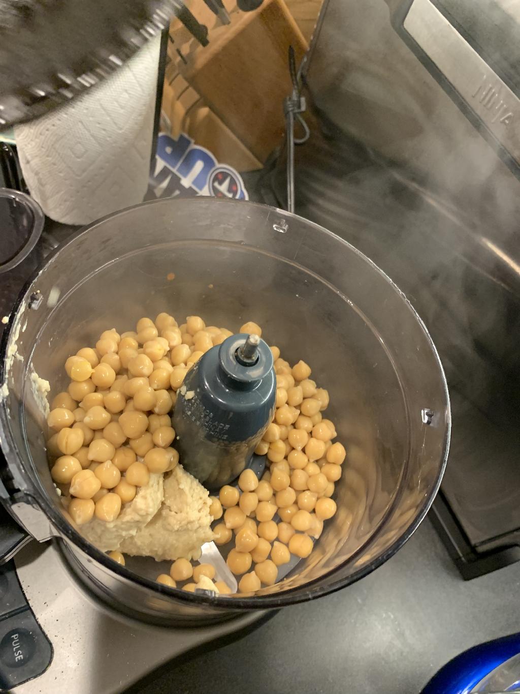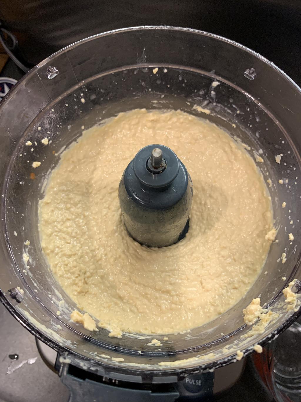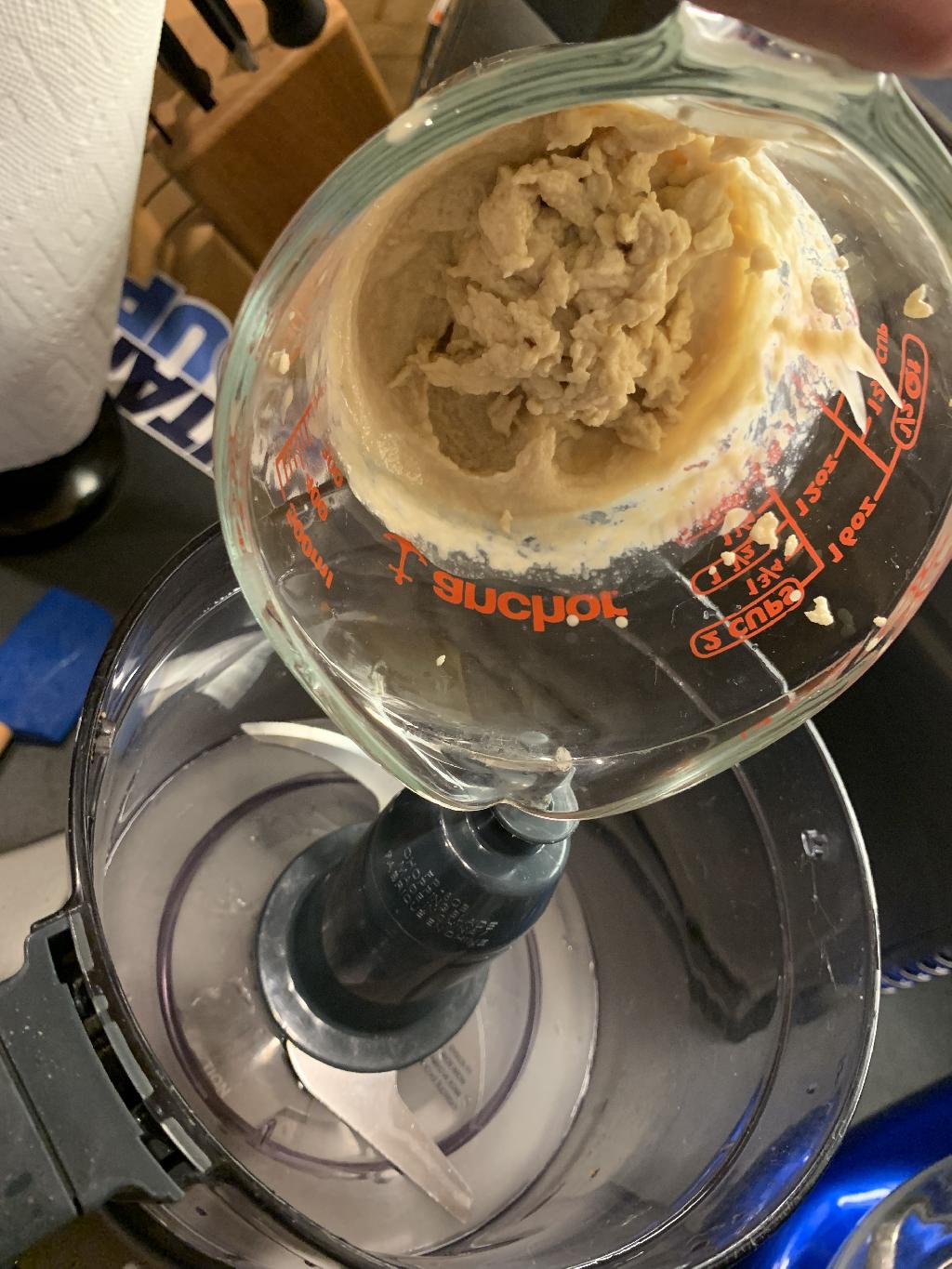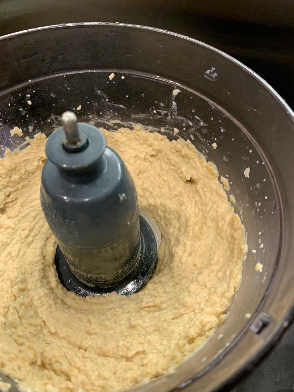 Step #4 Add Tahini and Lemon Juice mixture to food processor.