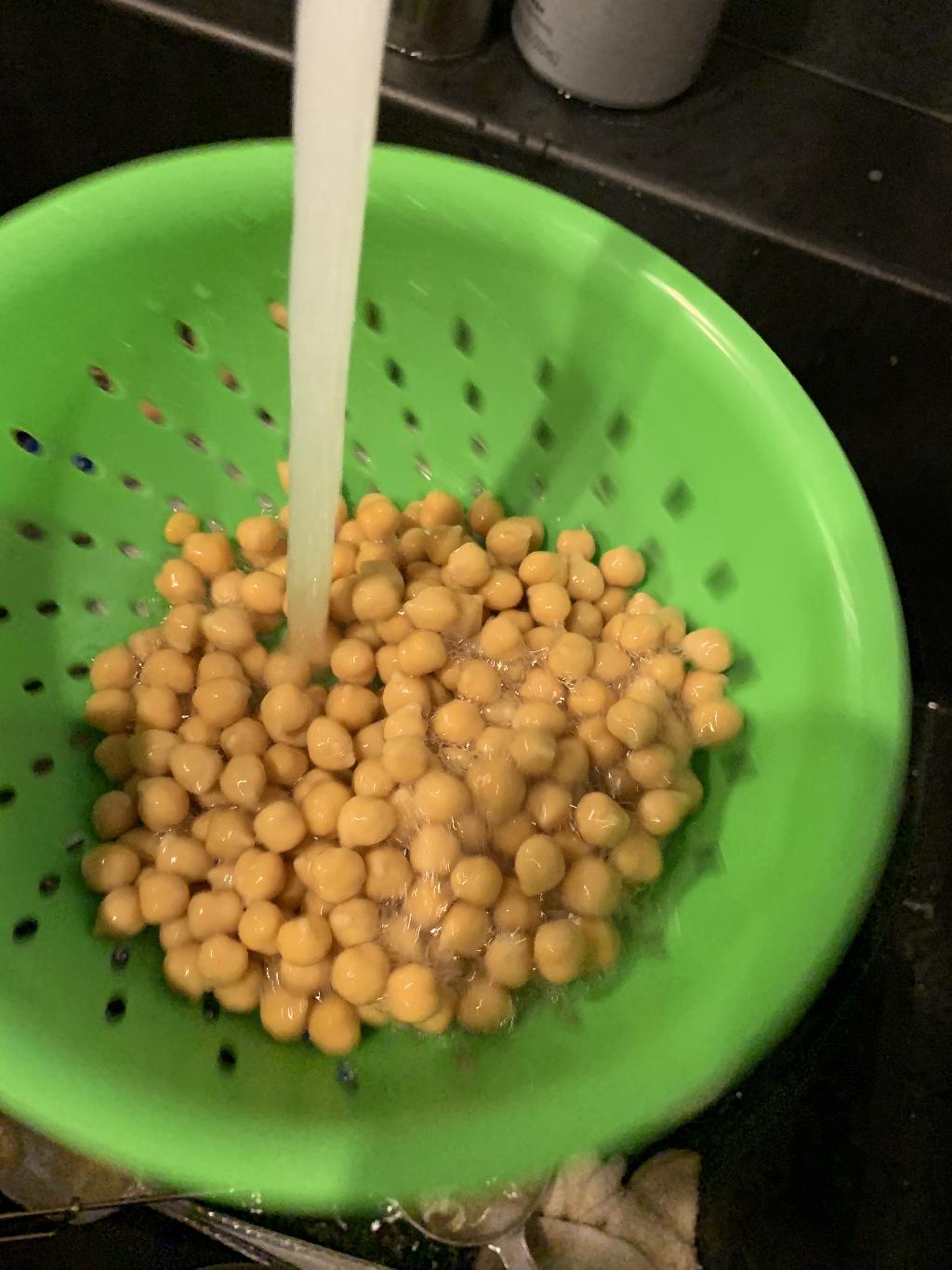 Step #5 Open the can of garbanzo beans and rinse them with cool water.