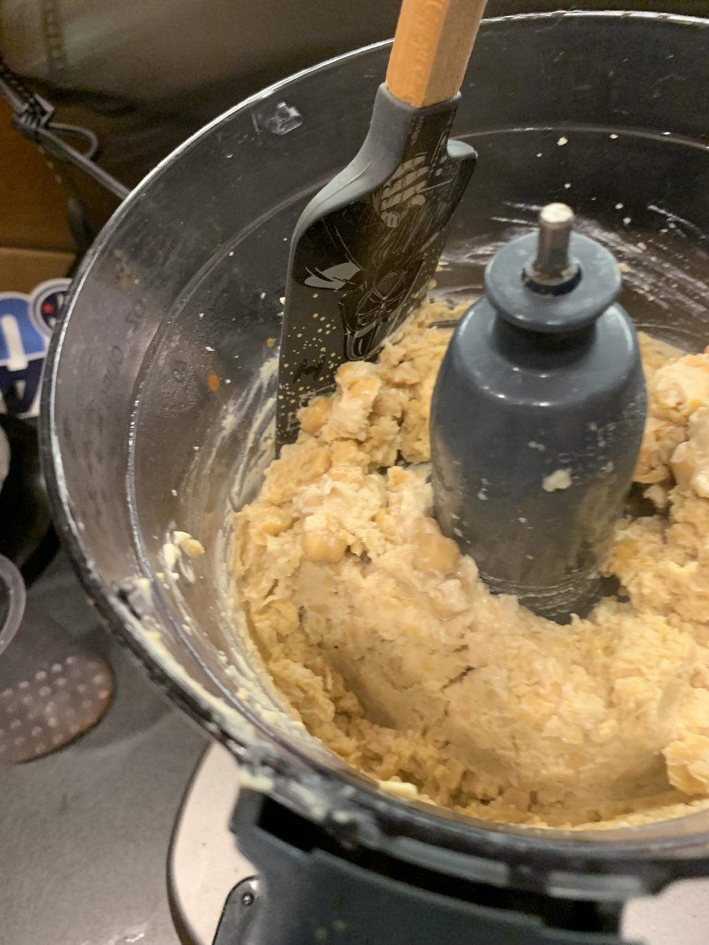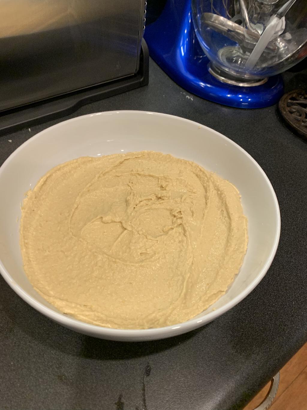 Step #15 Using a spatula, pour the hummus into a serving bowl.