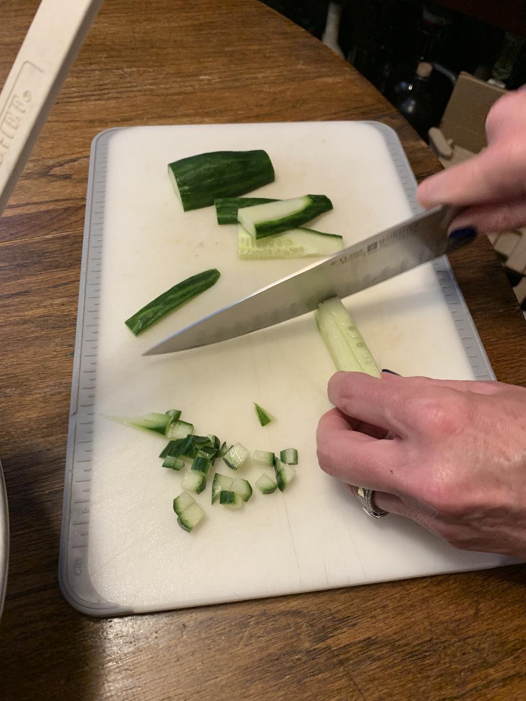Step #5 Remove any seeds, then cut the peppers into large pieces.