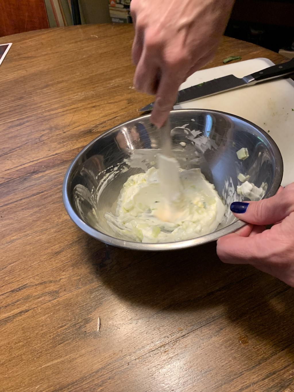 Step #3 Using a fork or small whisk, combine the Tahini and lemon juice.