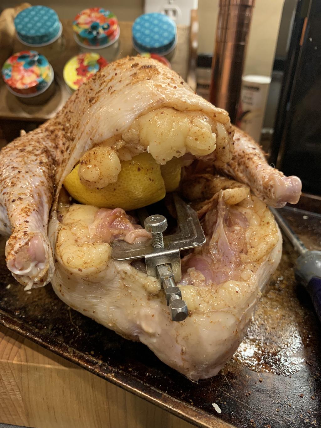 Step #4 Cut a lemon in half and place in the cavity of the bird.