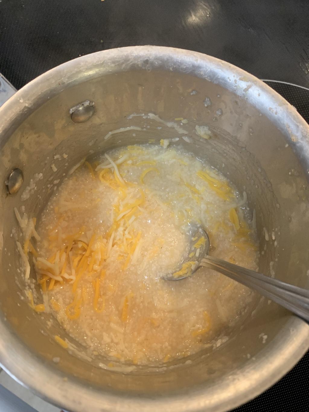 Step #4 Stir in one cup of Cloy Jack Cheese.