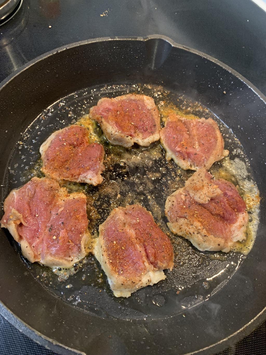 Step #4 Add to hot skillet and allow to cook for a few minutes. These are small and won't take long to cook so make sure your skillet it hot.