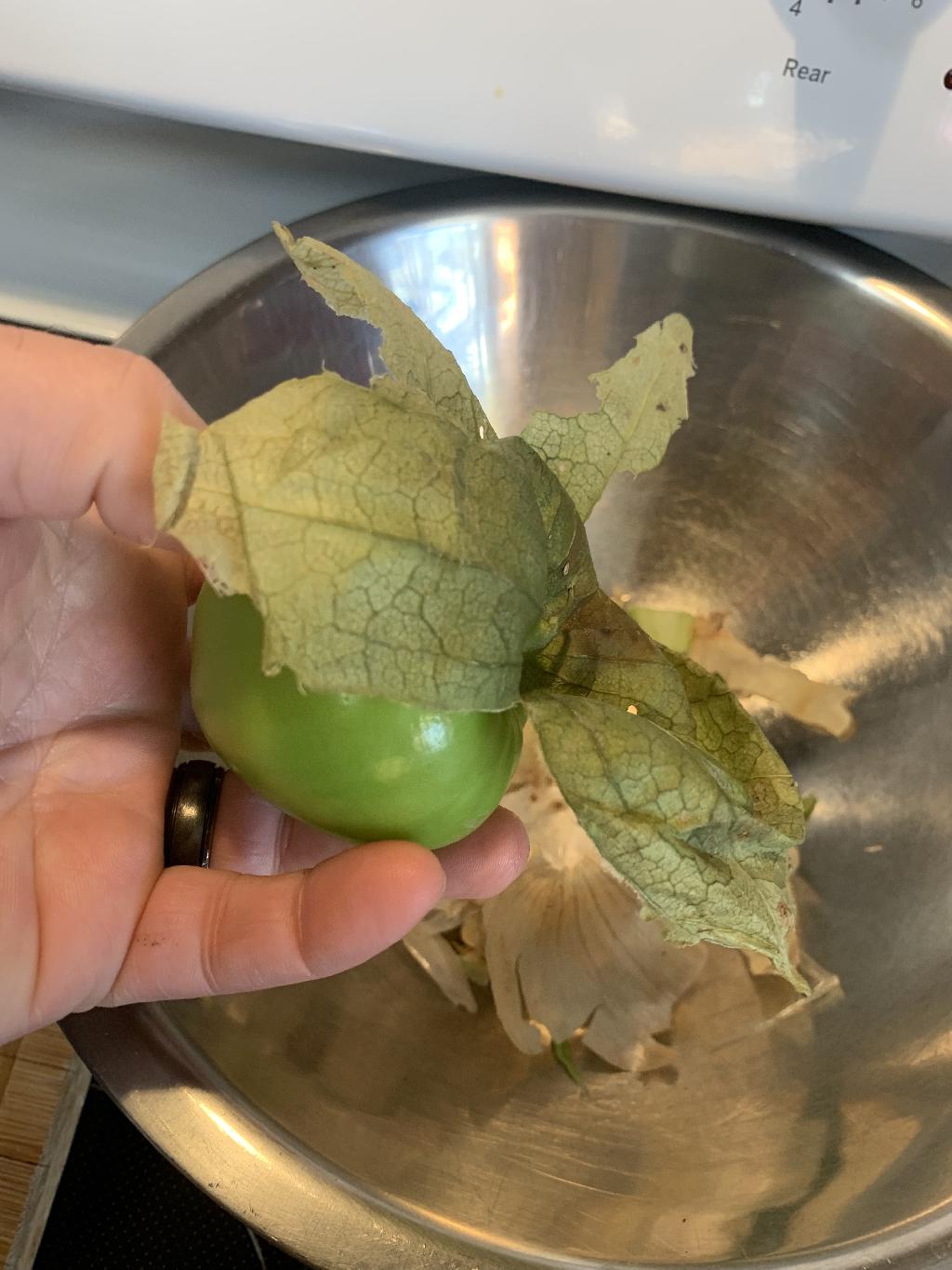Step #3 Wash the Tomatillos and Peppers and remove skin from Onion
