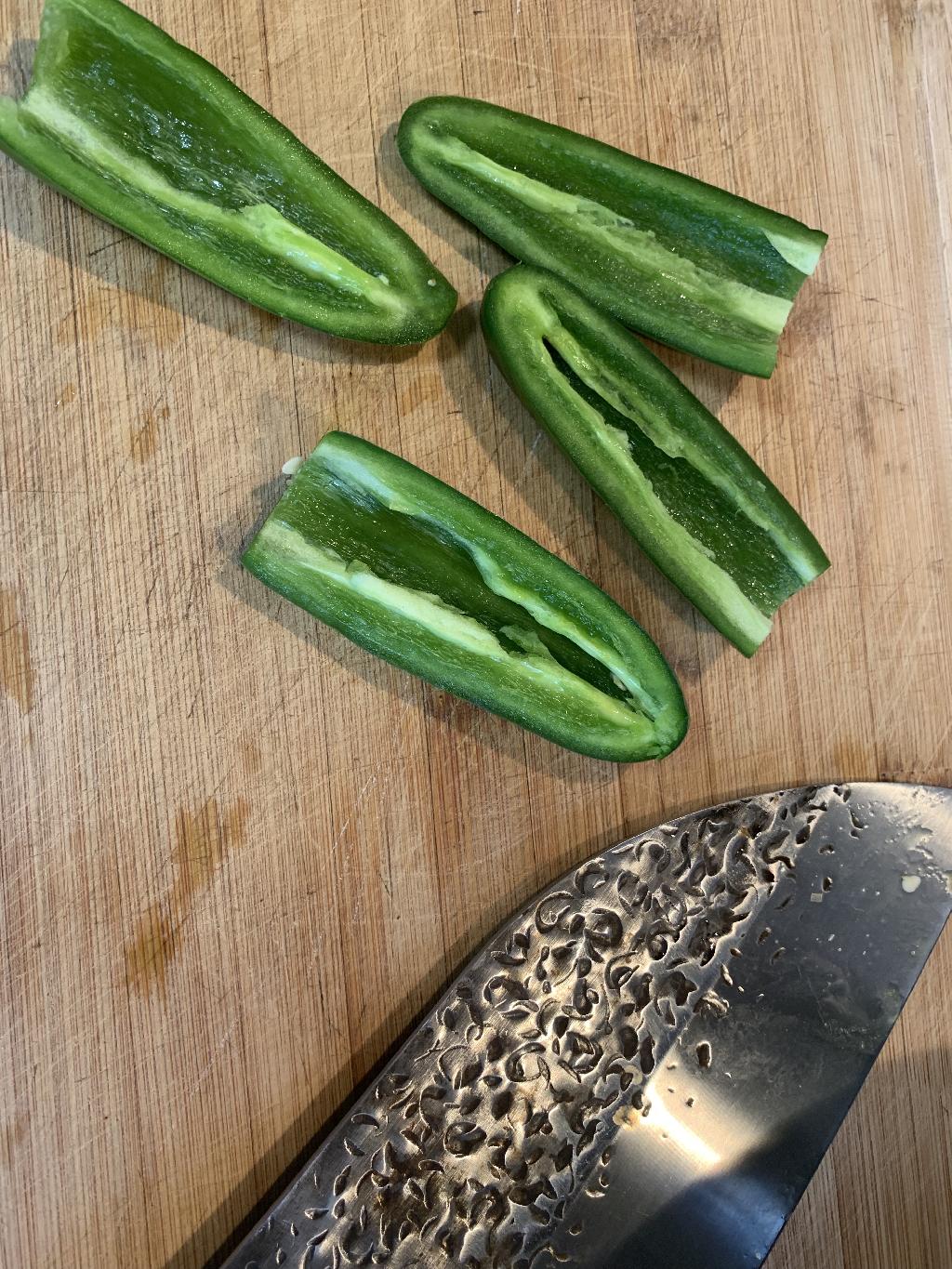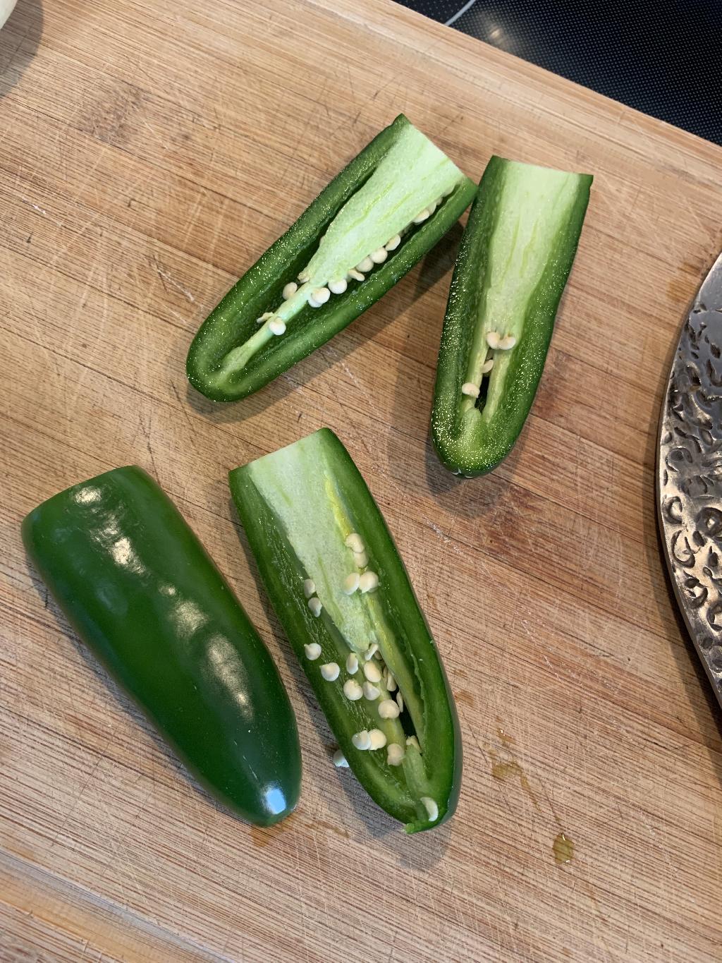 Step #3 Remove the seeds from the Jalapeno's, scraping out with a spoon.